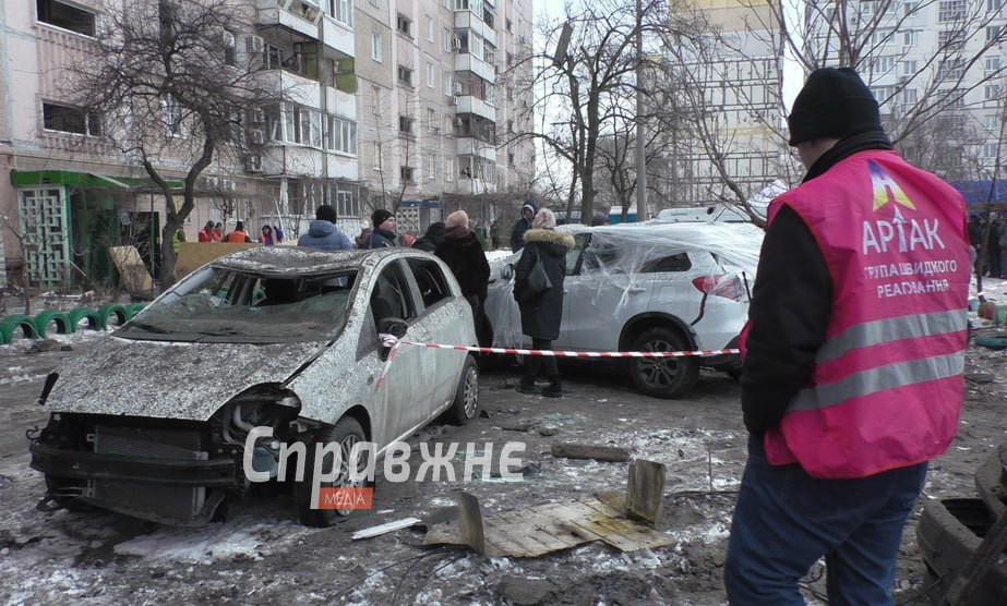 "Как не удивительно, на этот раз пострадавшие получили травмы от карнизов для штор, потому что люди лежали на кроватях головами к окнам. Также повреждены где-то 10-12 машин, это то, что мы сами насчитали, но точно не скажу... Двигатель одной машины лежит на подъезде (на "козырьке", – ред.) – одна машина все, фактически "испарилась" – комментирует волонтер, соучредитель благотворительного фонда "Артак Вместе к мечте" Даниил.