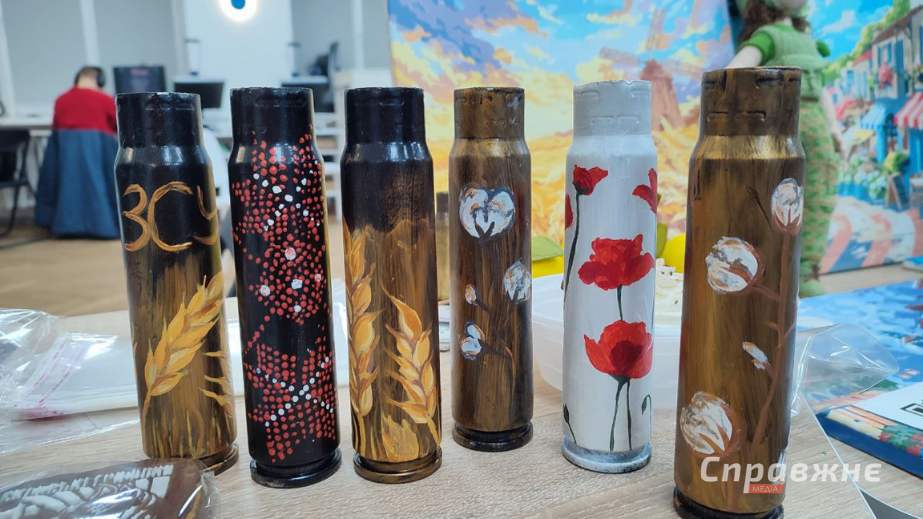"Мы решили провести такое полезное для запорожцев мероприятие, чтобы, с одной стороны, собрать средства на поддержку войска, а с другой, чему-то научить людей. Сегодня актуально обучение гражданских оказанию первой медицинской помощи. На нашем мероприятии работал хороший инструктор, который провел занятия. Также волонтеры показали, как плести маскировочные сети. Плюс у нас проходил аукцион, где можно было приобрести гильзы, расписанные моей дочерью, или картины и купить крафтовые сладости”, – рассказала организатор мероприятия Марина Гайдук.