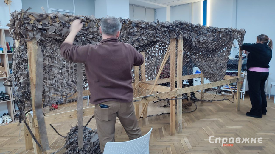 "Сейчас вот большая потребность в больших сетях. То есть, если мы раньше выплетали сетки для накрывания легковых автомобилей или блиндажей, то сейчас это сетки для больших автомобилей – это 10–20 метров длина и девять метров ширина. Ребята заказывают сетки и сразу становятся в очередь на другой сезон", – рассказывает волонтерка Алла Мирошниченко.