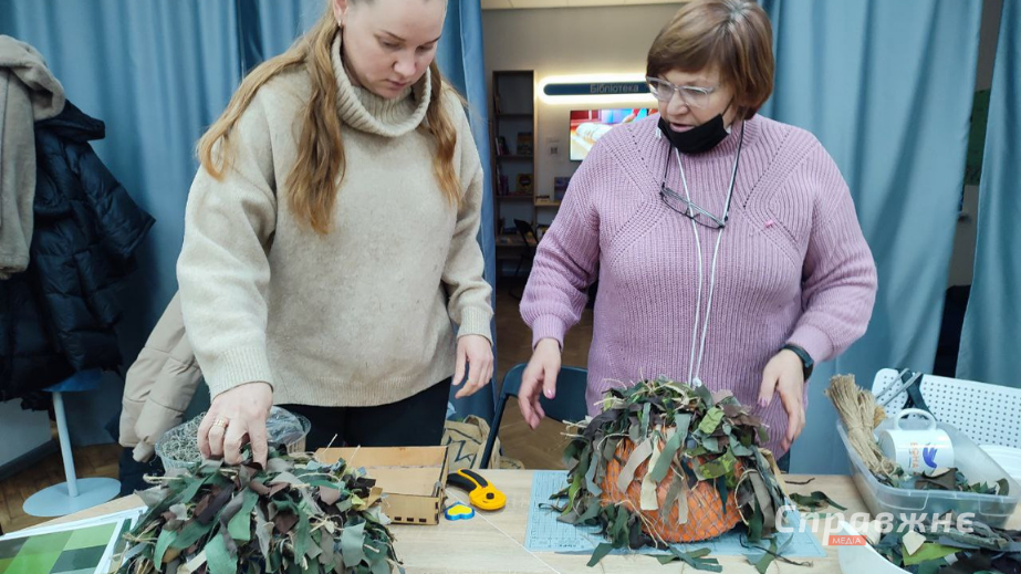 Более десяти волонтеров, которые плетут маскировочные сетки для защитников уже несколько лет, провели свой мастер-класс – учили всех желающих тонкостям создания маскировки.