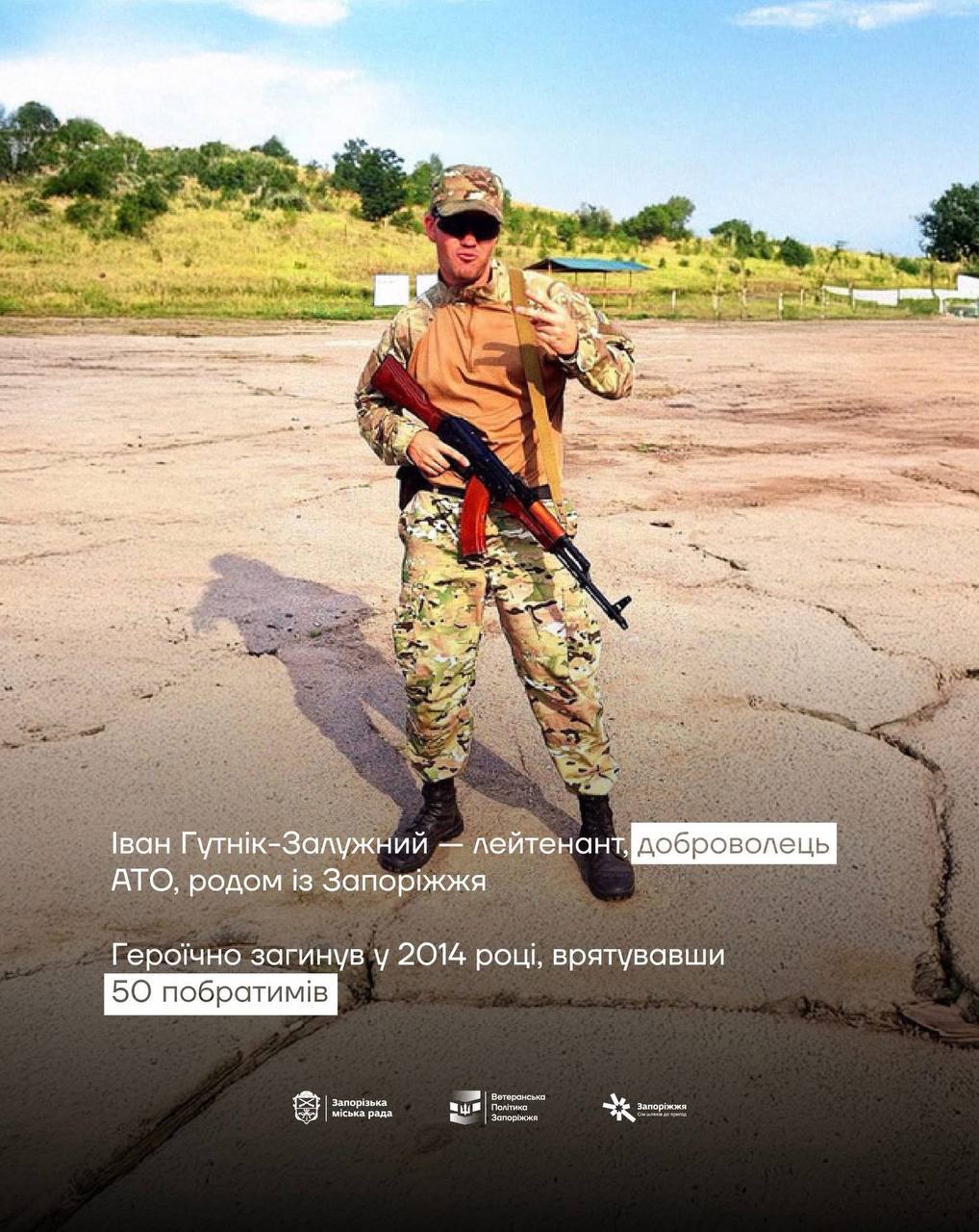 Этот мемориал посвящен запорожцу, погибшему, защищая независимость Украины. Он был внуком Ивана Аникеевича Залужного – легендарного ветерана Второй мировой войны, ушедшего из жизни в возрасте 103 лет.