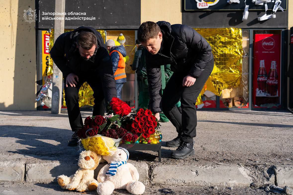 Также представитель ОП вместе с областными властями побывал на месте недавнего удара российским дроном, где почтил память погибших юноши и девушки возложением цветов к стихийному мемориалу .