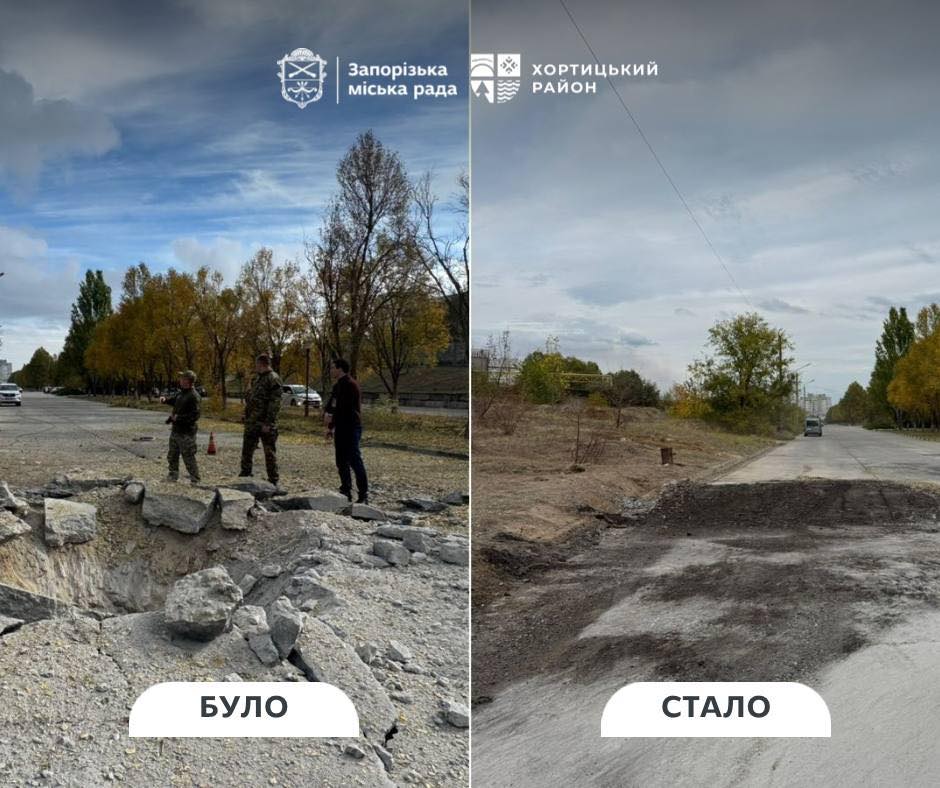 Ранее сообщалось, что вследствие авиаудара была частично разрушена дорога в Хортицком районе города.