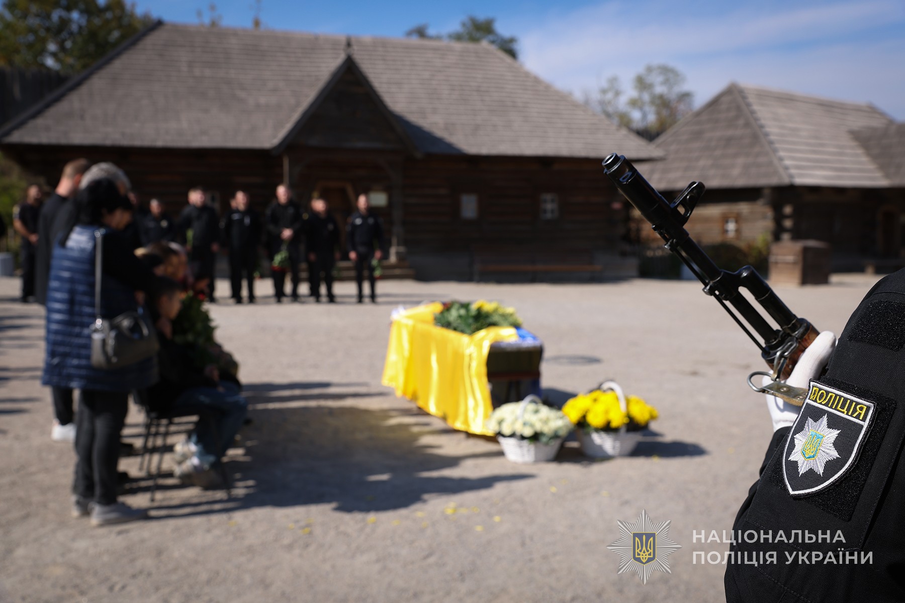 В последний путь погибшего бойца стрелкового батальона провели родные, близкие, руководство областной полиции и коллеги.