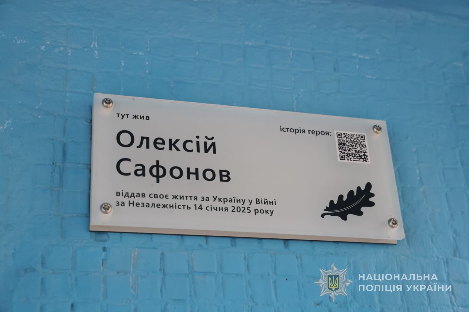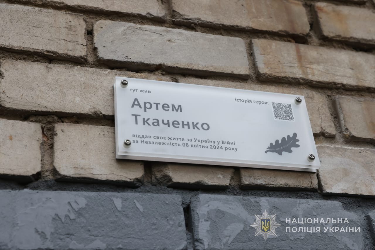 Таблички в честь старшего лейтенанта полиции Алексея Сафонова и лейтенанта полиции Артема Ткаченко появились на домах, где они жили, передает "Справжнє" со ссылкой на полицию.