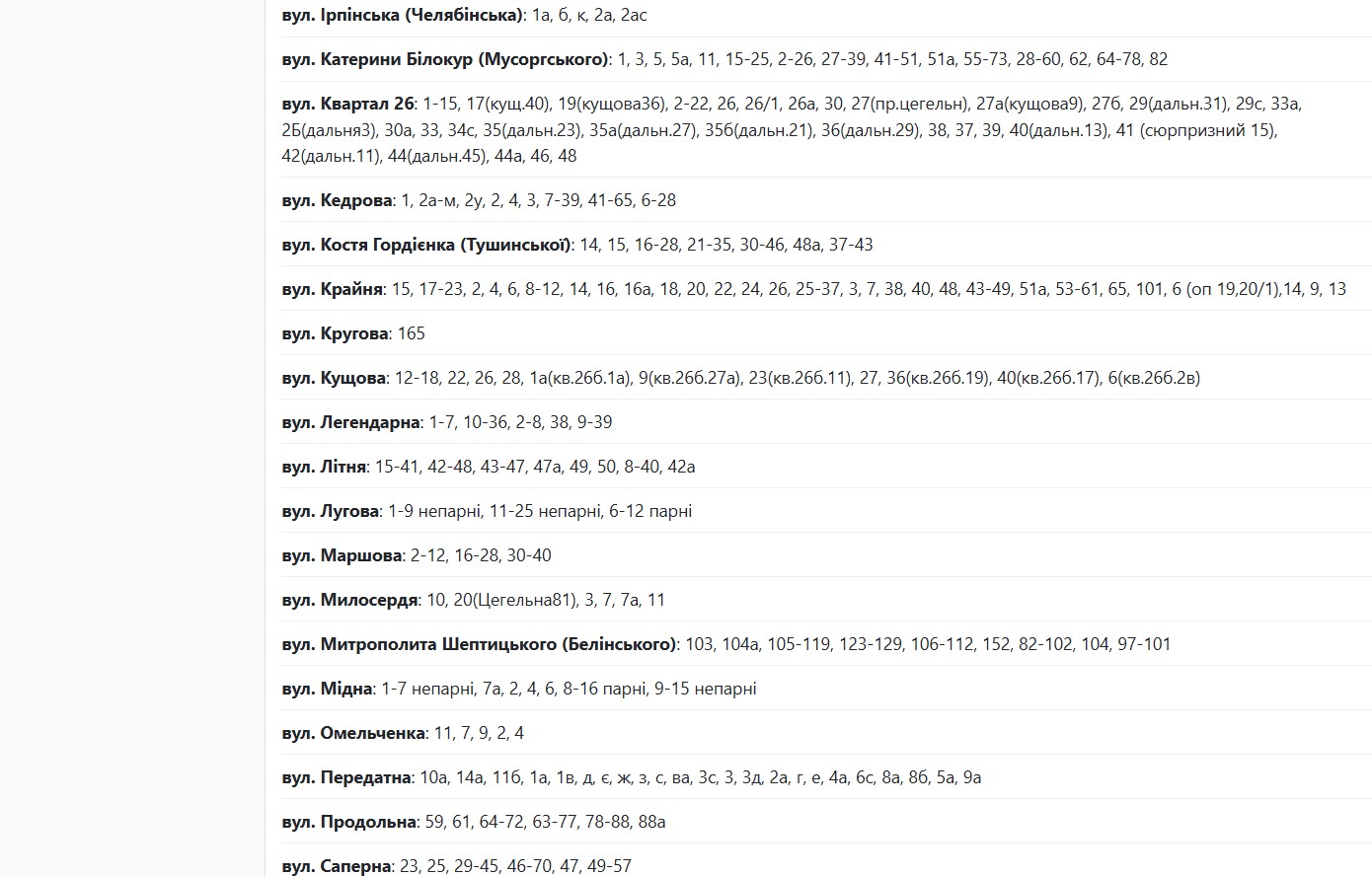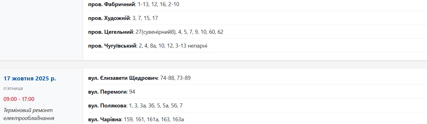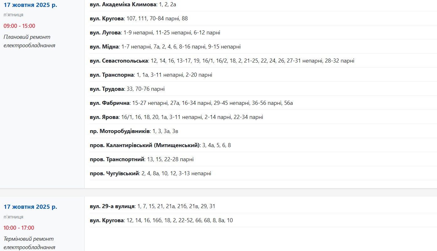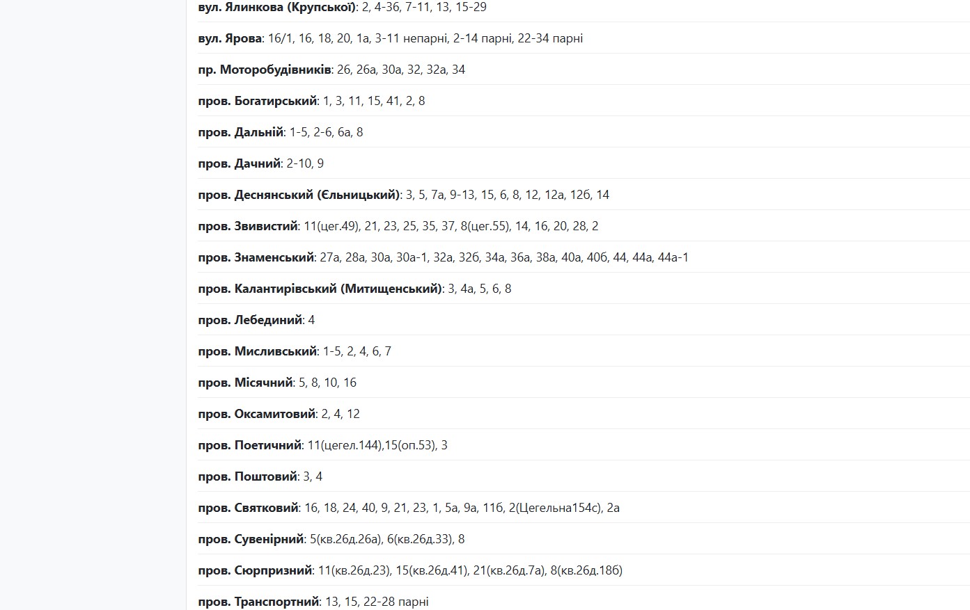 Кроме того, с 09:00 до 15:00 и с 10:00 до 17:00 электричества не будет в таких домах: