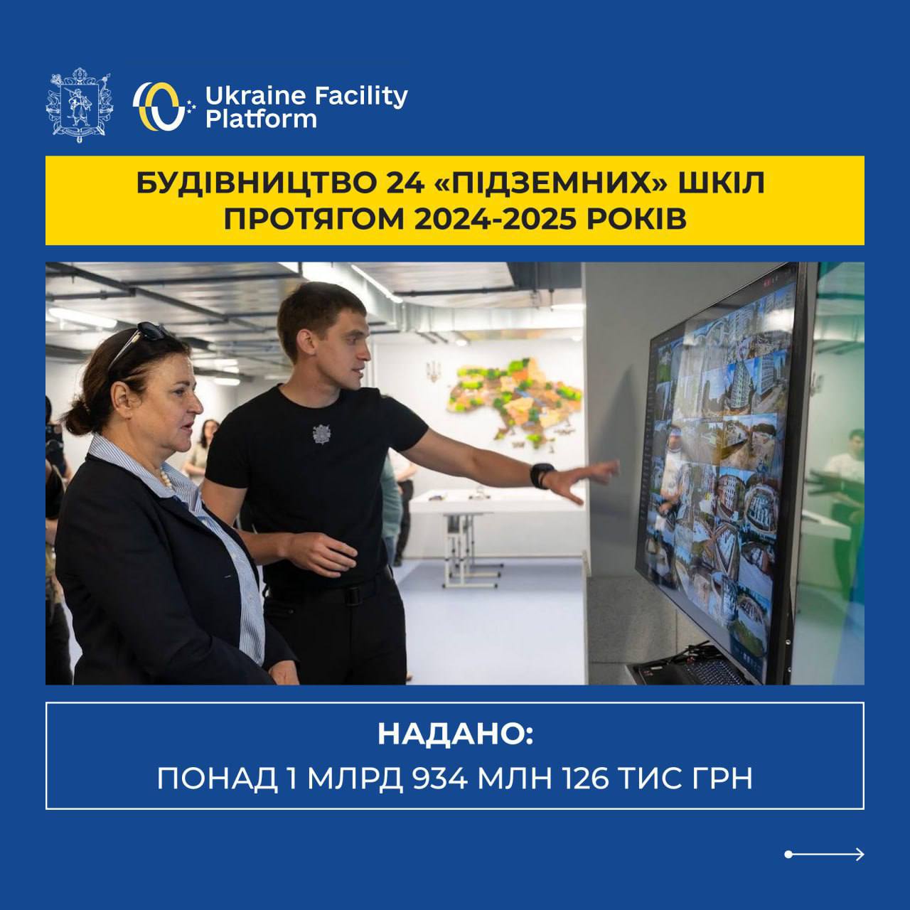 В частности, на строительство всех 24 "подземных" школ в течение 2024-2025 годов европейские доноры предоставили более 1 миллиарда 934 миллиона 126 тысяч гривен.