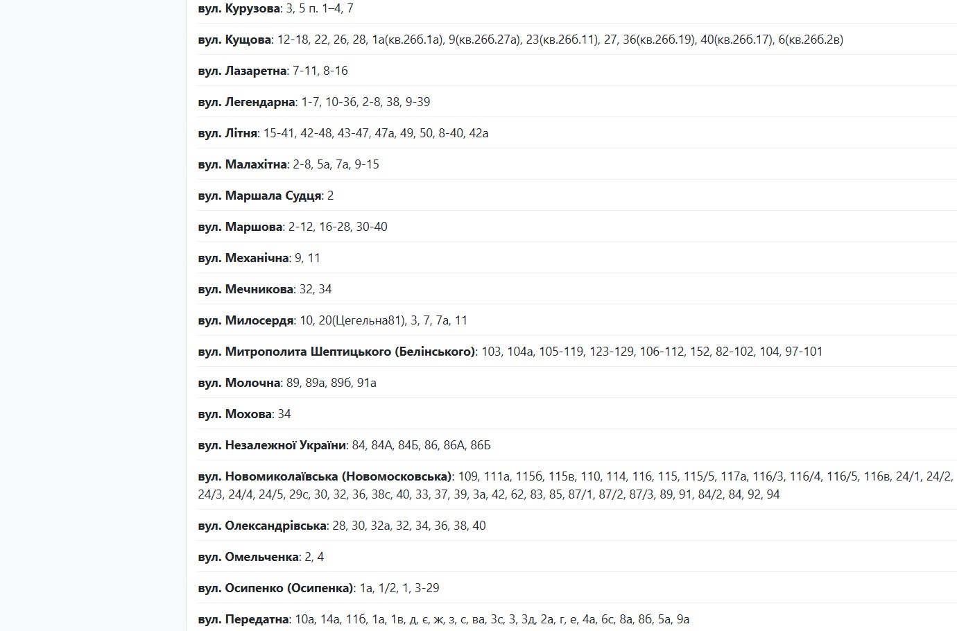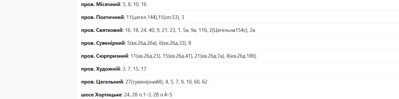 Также с 09:00 до 17:00 из-за планового ремонта без электричества останутся жильцы следующих домов: