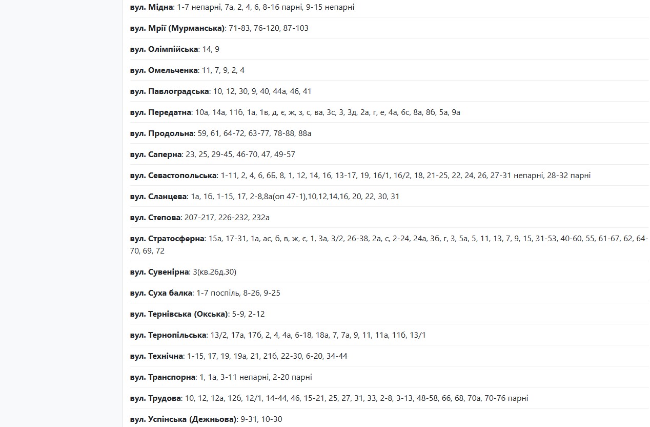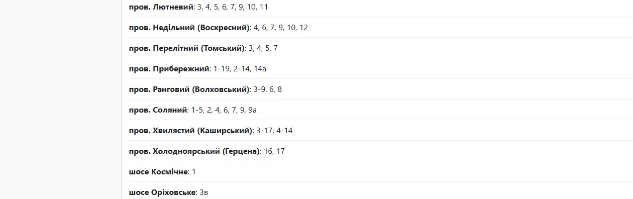 Также с 10:00 до 16:00 из-за планового ремонта электрооборудования света не будет по указанным адресам: