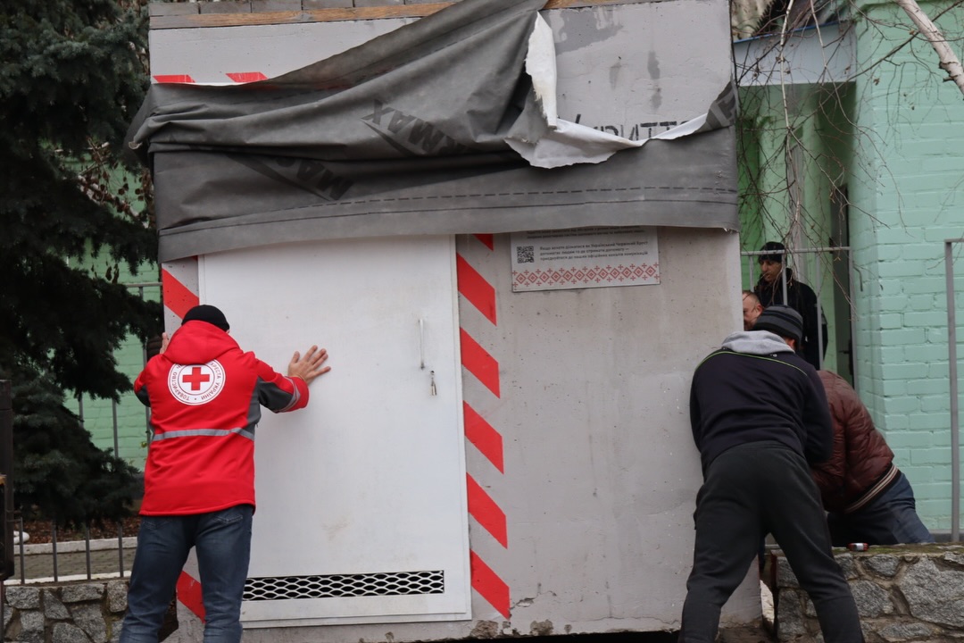 В понедельник, 1 декабря, специалисты Красного Креста установили три модульных укрытия: по одному в каждой громаде.