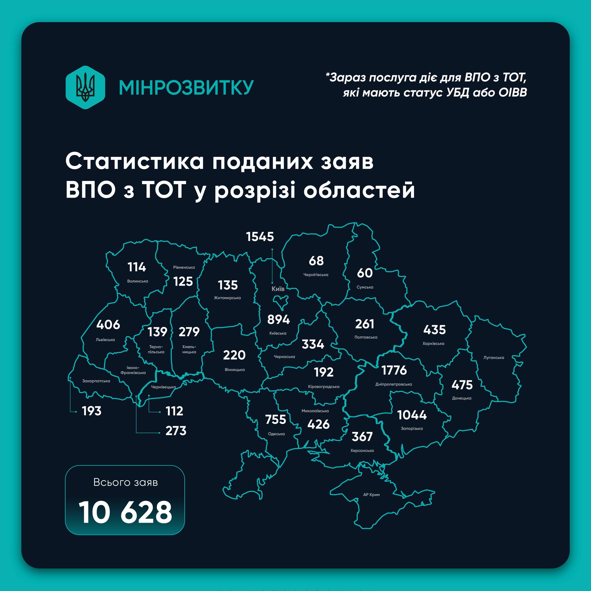 Если говорить о регионах происхождения заявителей, то от людей, которые были зарегистрированы в Запорожской области, то есть ранее имели имущество на ВОТ Запорожья, поступило 2067 обращений. Всего по Украине зарегистрировано 10 628 заявлений.