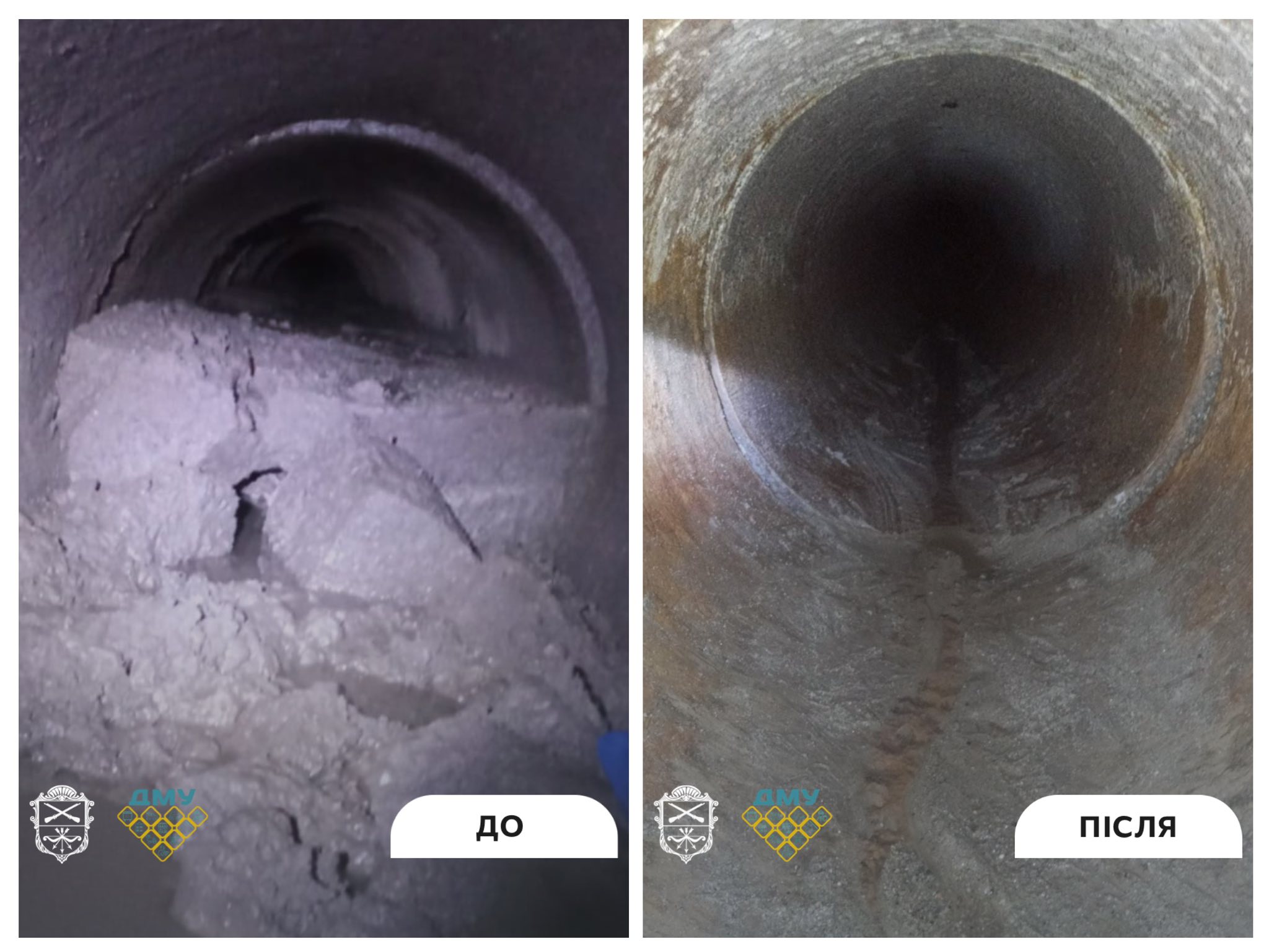 Засоры канализаций местами были сильными – в трубах находили и мусор, и ветки, и даже бетонные остатки. Для того, чтобы их быстро и эффективно убрать, подрядчики использовали гидродинамический метод.