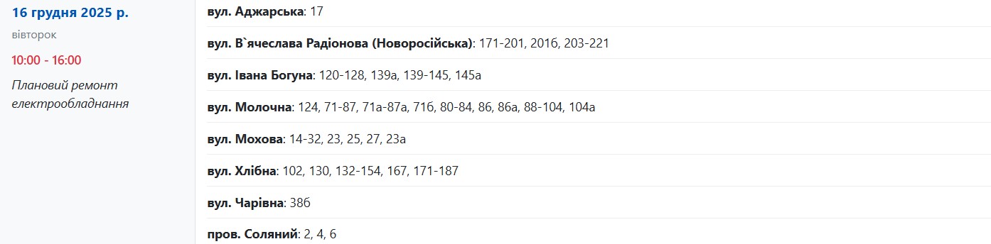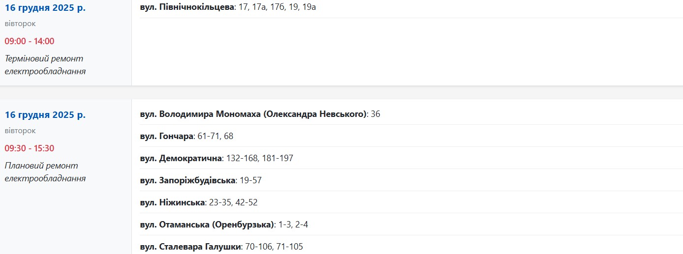 Во вторник, 16 декабря, в Запорожье обесточат более 30 улиц. Об этом сообщает Запорожьеоблэнерго, передает "Справжнє".