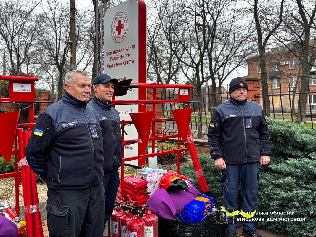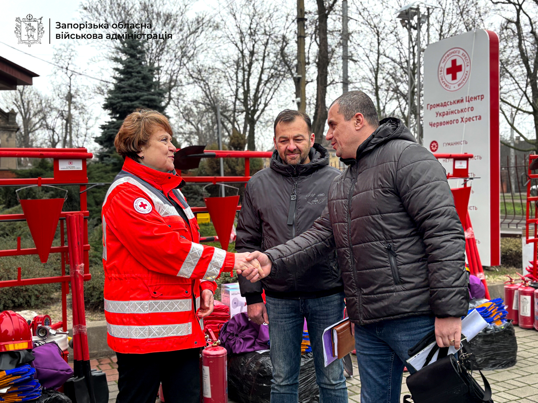 Запорожская областная организация Общества Красного Креста Украины передала комплекты пожарного снаряжения для добровольных пожарно-спасательных формирований Кушугумской, Новоалександровской, Михайловской и Широковской громад. Каждый комплект содержит защитную одежду, каски, перчатки, инструменты, огнетушители, сирены и громкоговорители.