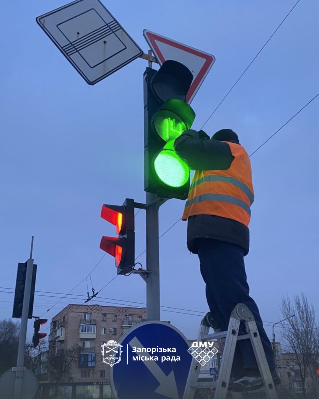 Отмечается, что на перекрестке проспекта Соборного и улицы Дмитрия Донцова заменили светофор из-за новой схемы организации дорожного движения.