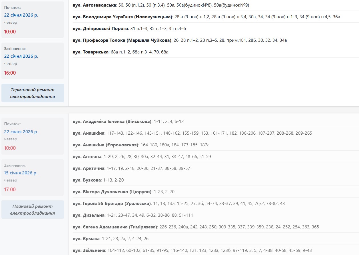 Напомним, из-за сложной ситуации в энергосистеме в Запорожской области сегодня, 22 января, ввели графики аварийных отключений.