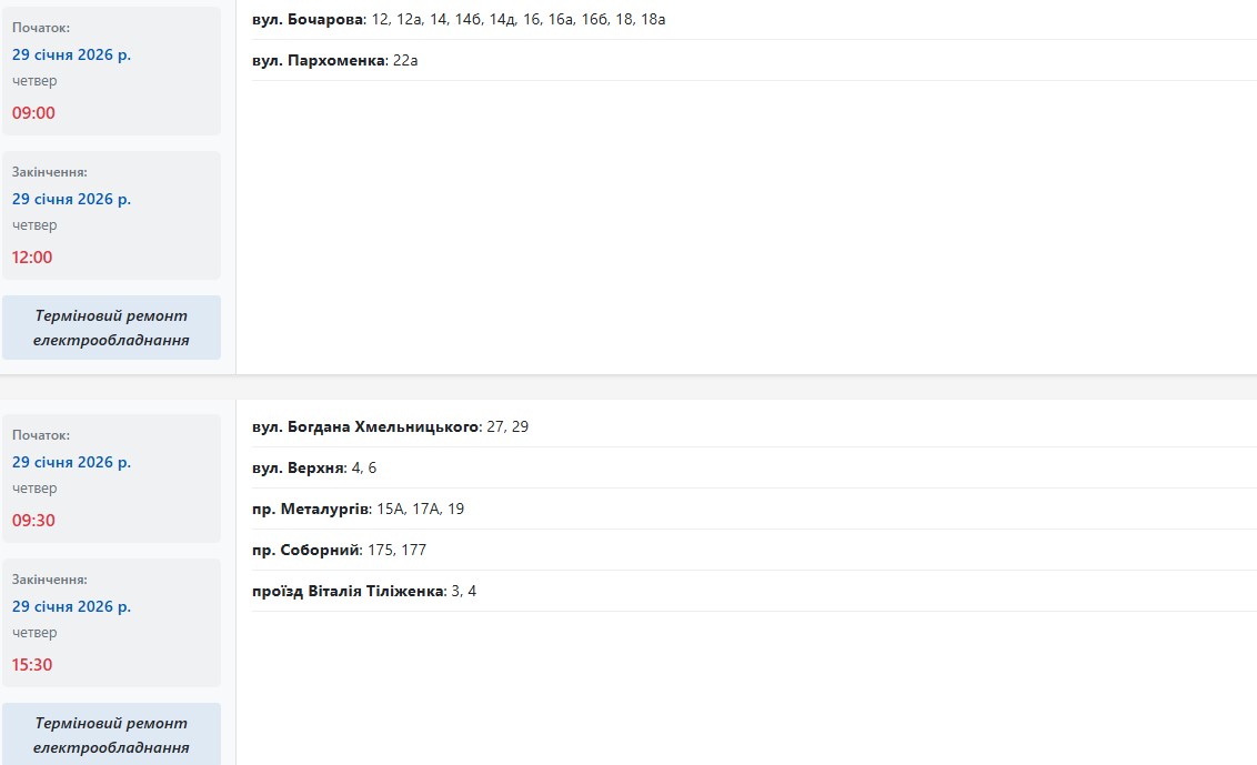 Напомним, в четверг, 29 января, графики почасовых отключений действуют в Запорожской области круглосуточно.