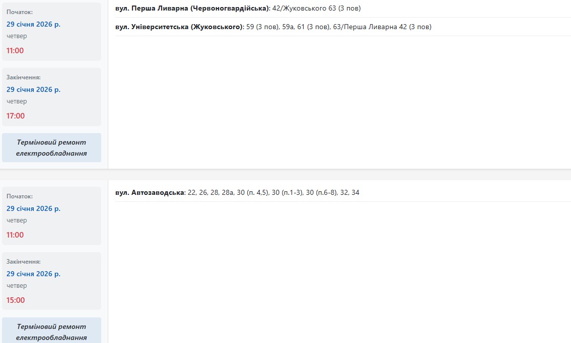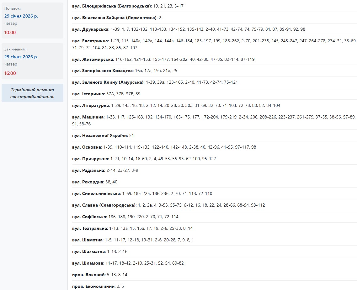 В разных районах Запорожья обесточат более 40 улиц в четверг, 29 января. Об этом сообщает АО "Запорожьеоблэнерго", передает "Справжнє".