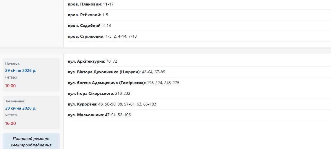 Также с 10:00 до 16:00 электричества не будет по следующим адресам: