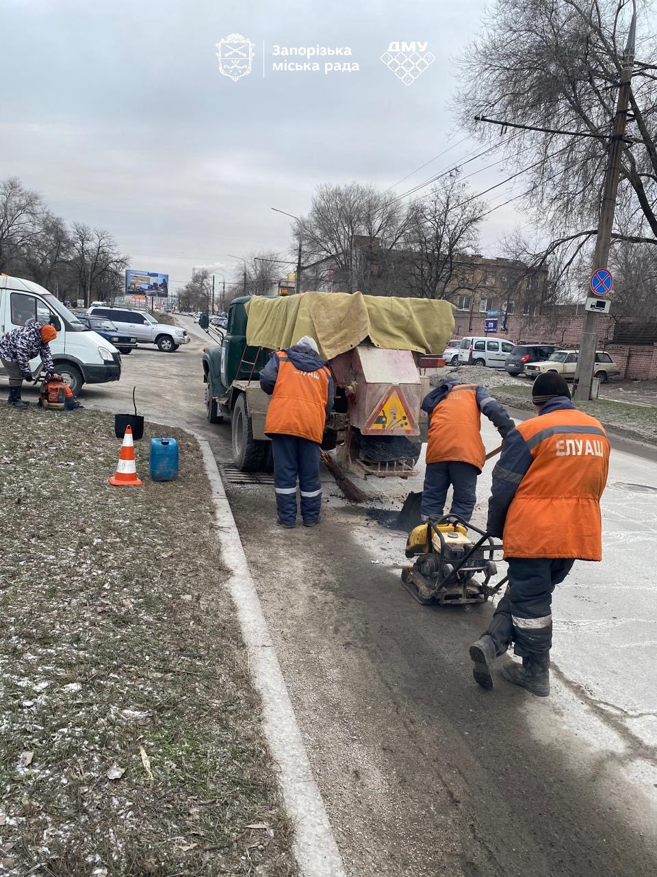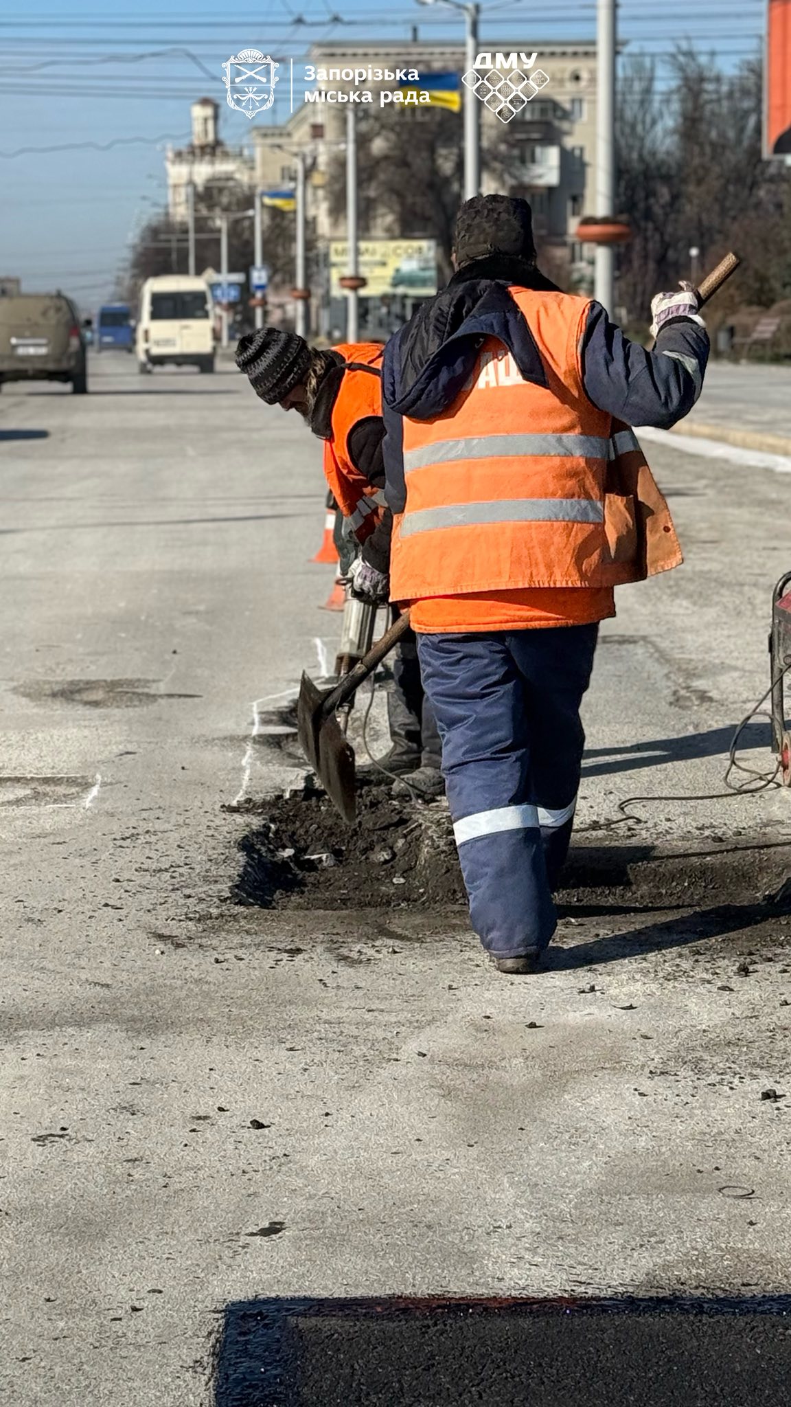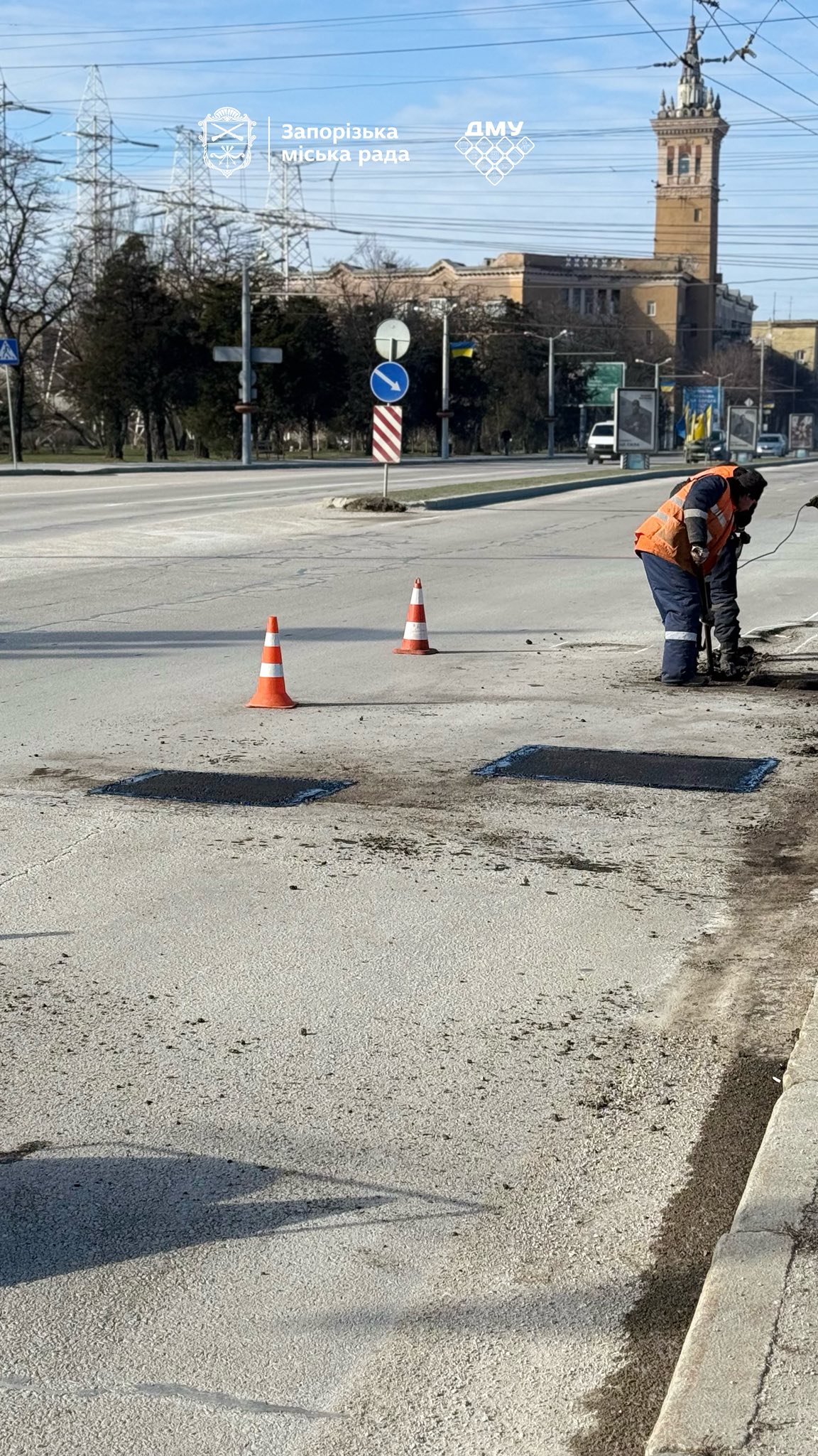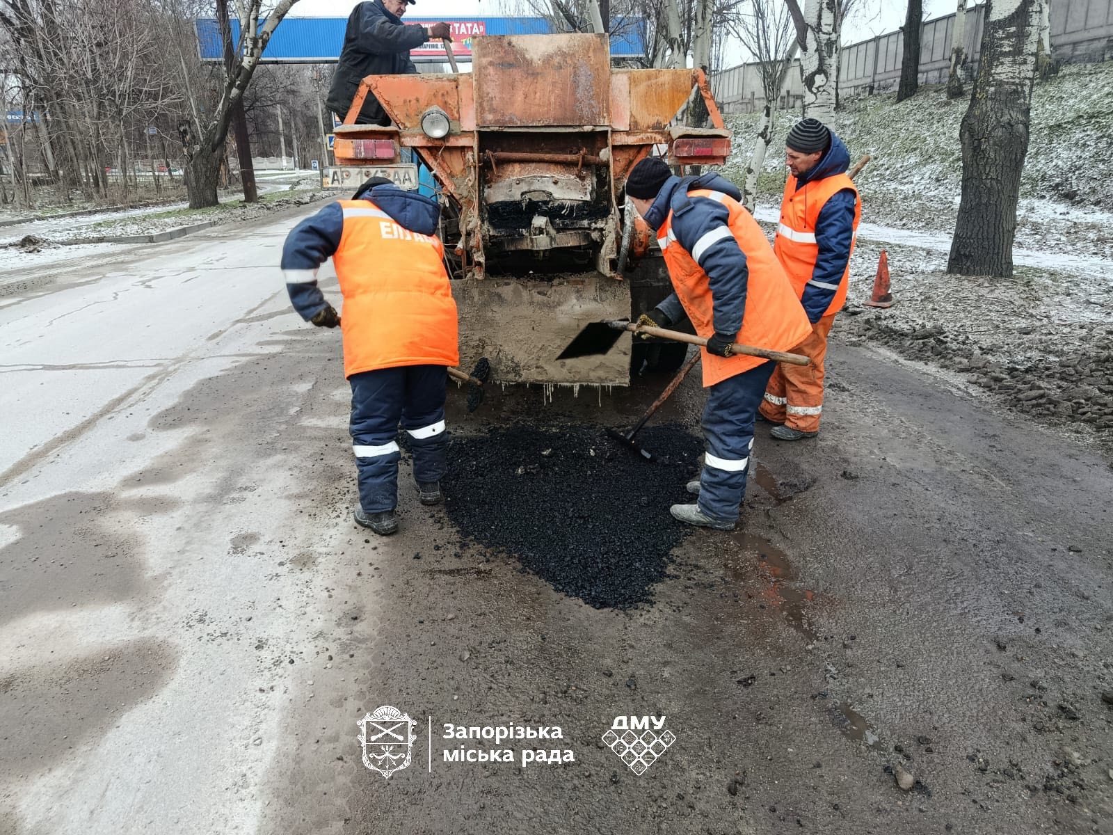 После морозов, перепадов температуры, дождей и таяния снега в Запорожье появились ямы на дорогах. Как только погода позволила, дорожники сразу же выехали их латать.