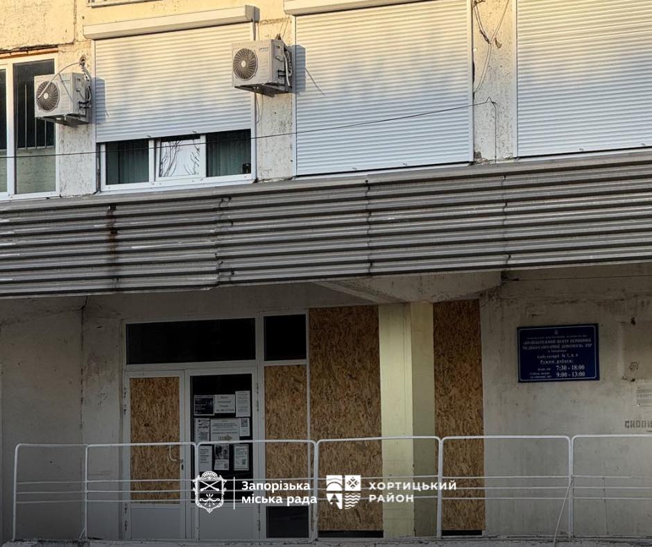 Специалисты Запорожремсервиса провели консервацию оконных проемов с помощью плит OSB. Работы завершили в течение суток после удара, чтобы защитить здание больницы от холода, и врачи смогли продолжить прием маленьких пациентов в комфортных условиях.