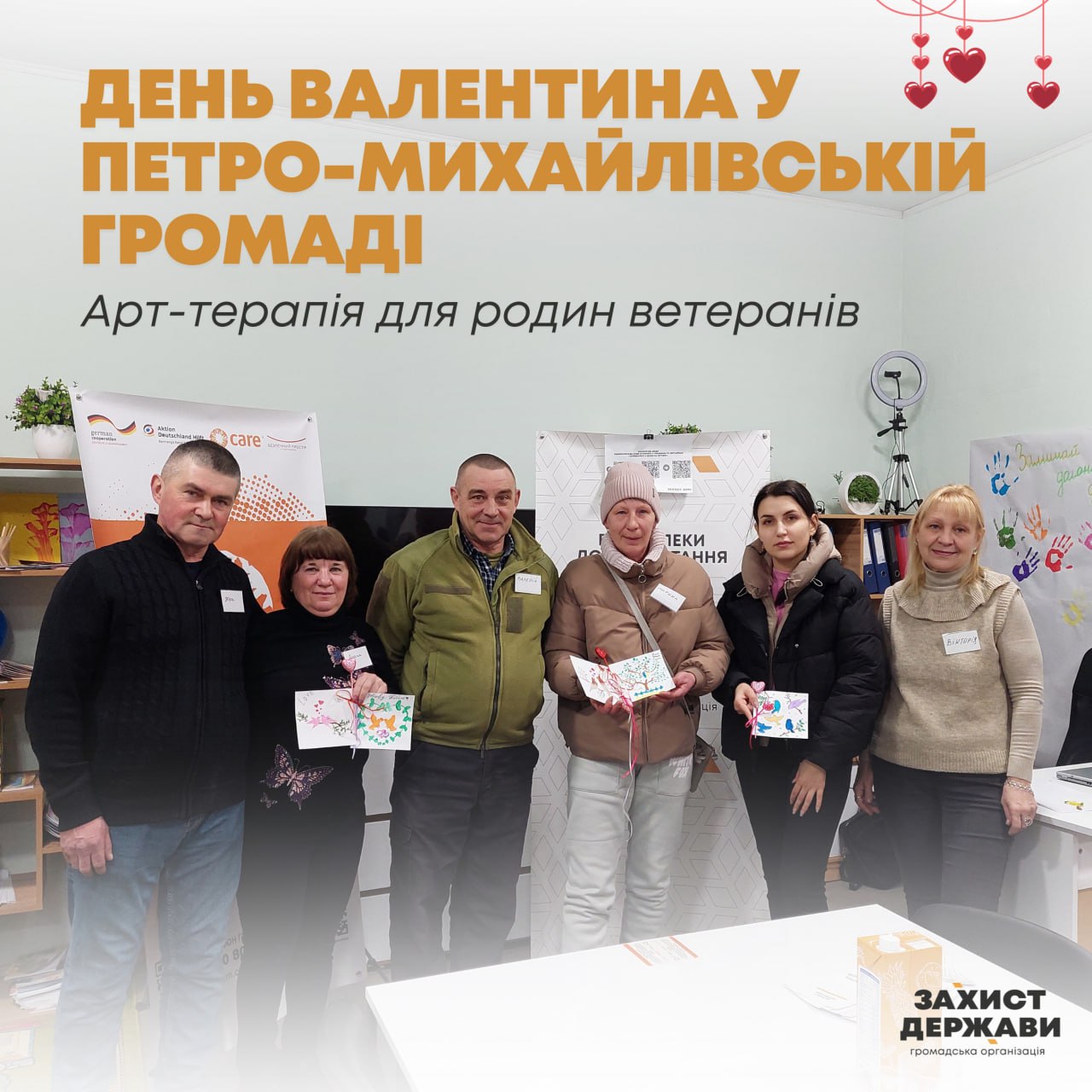Ко Дню влюбленных запорожский центр ОО "Защита государства" организовал серию арт-терапевтических встреч для семей защитников и ветеранов. Об этом проинформировали в общественной организации, передает "Справжнє".
