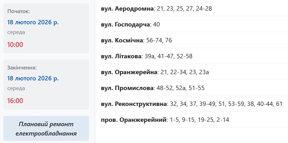 В среду, 18 февраля, временно обесточат несколько улиц в Запорожье. Об этом информирует "Справжнє" со ссылкой на Запорожьеоблэнерго.