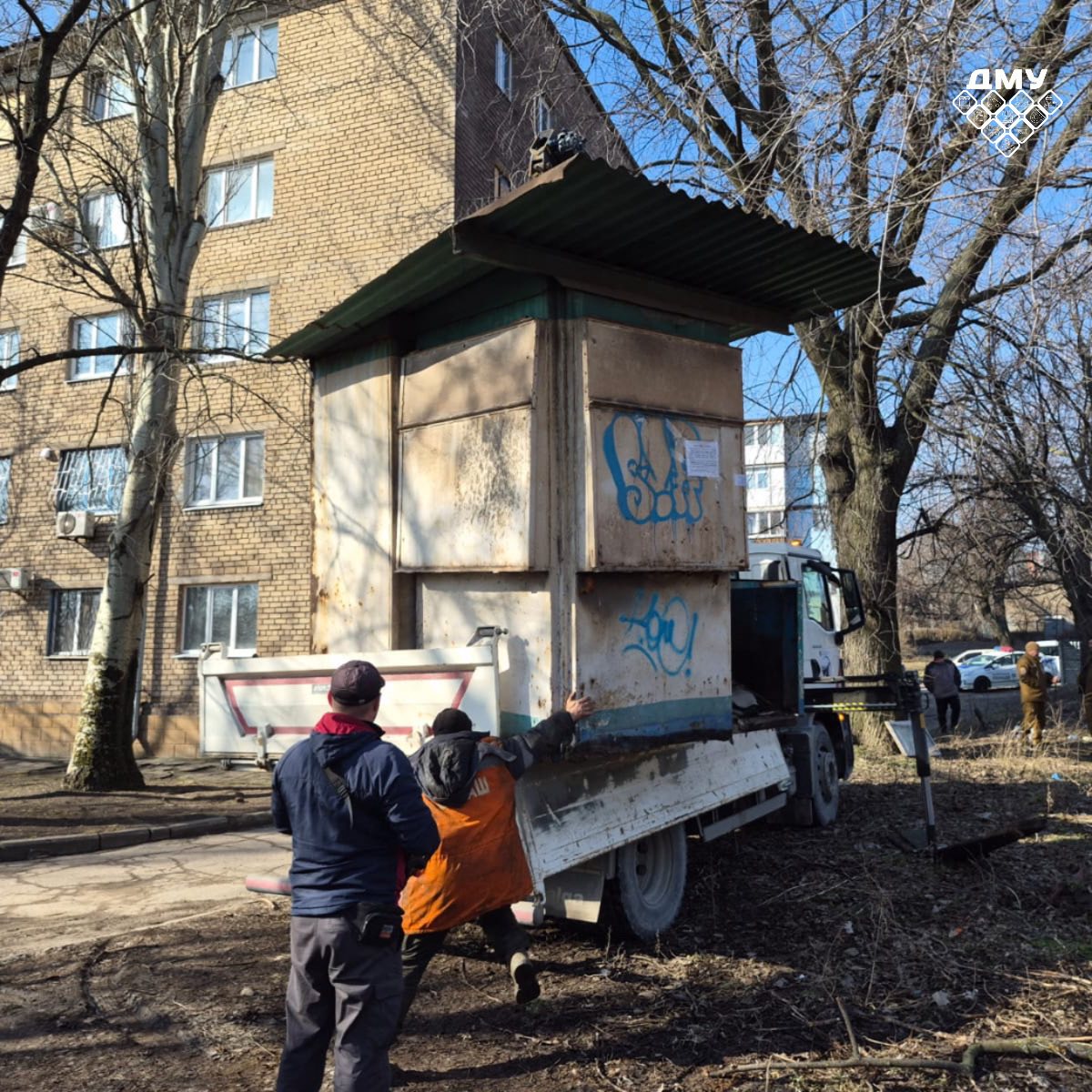 Еще одно заброшенное временное сооружение убрали на придомовой территории одного из районов. Судя по состоянию киоска, он там стоял годами.
