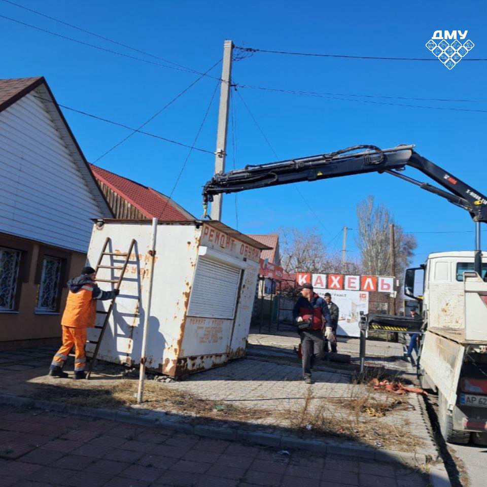 Заброшенный МАФ среди зарослей и киоск по ремонту обуви демонтировали в Запорожье, передает "Справжнє" со ссылкой на департамент муниципального управления.