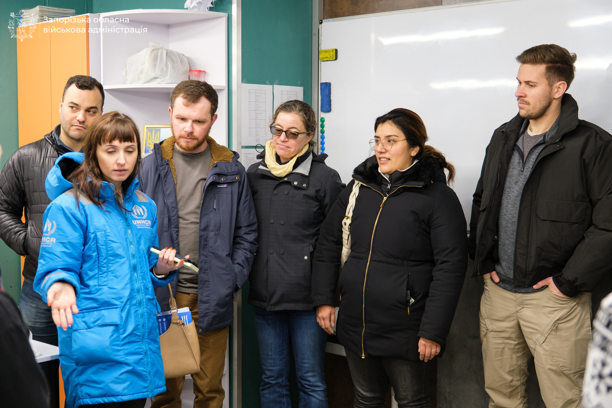 Также делегация посетила "подземную школу" и место недавнего удара вражеского "шахеда" в спальном районе города. Еще партнеры проверили жилой дом, восстановленный при поддержке организации "Каритас Запорожье".