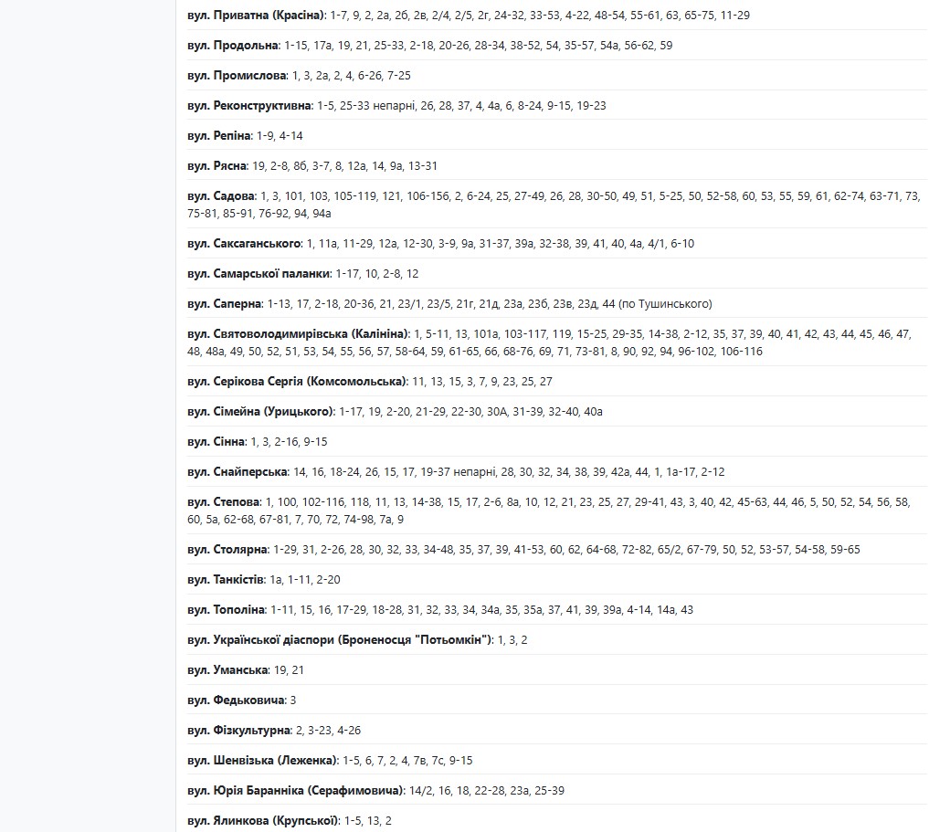 По имеющейся информации, в течение суток ремонтные работы будут проводить по следующим адресам:
