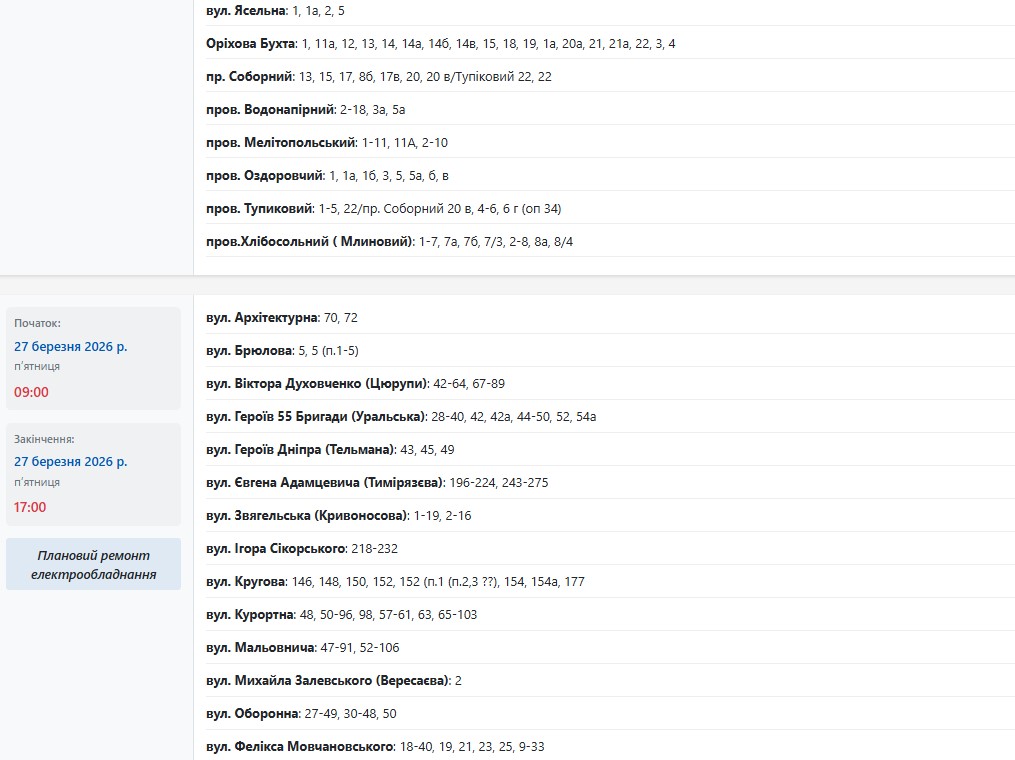 Напомним, из-за ремонтных работ в четверг, 26 марта, в Запорожье обесточили почти 400 улиц.
