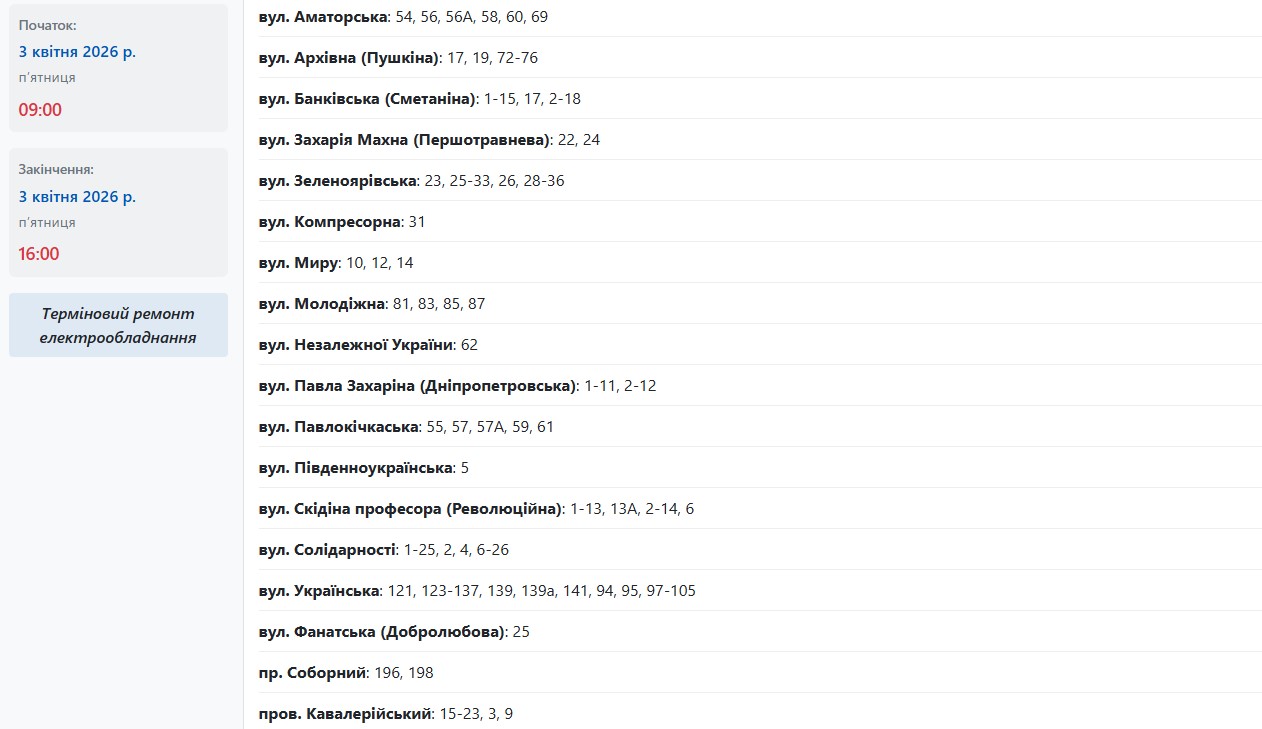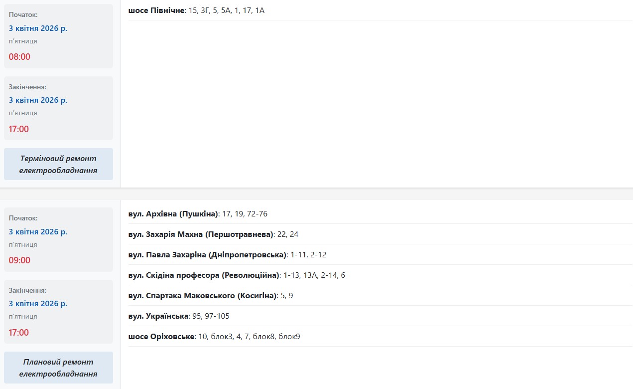 Дома на 55 улицах Запорожья останутся без электроснабжения в пятницу, 3 апреля, из-за планового и срочного ремонта электрооборудования. Об этом сообщает "Справжнє" со ссылкой на Запорожьеоблэнерго.