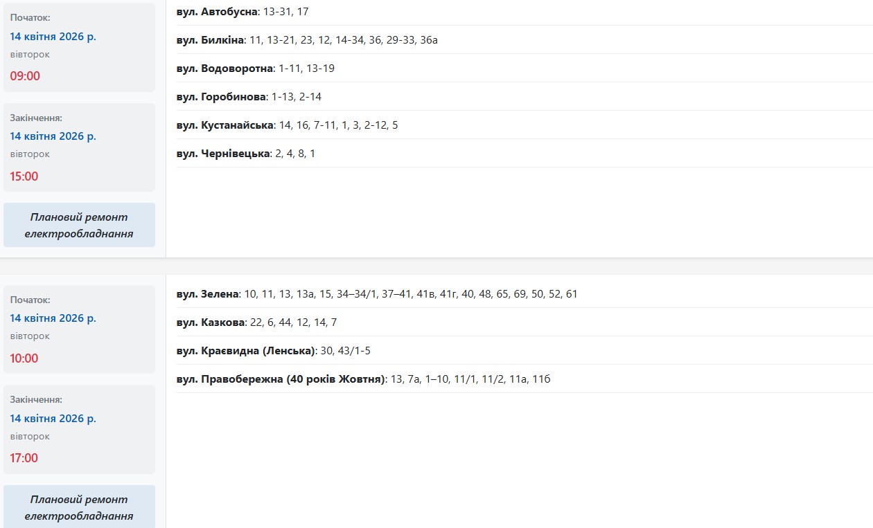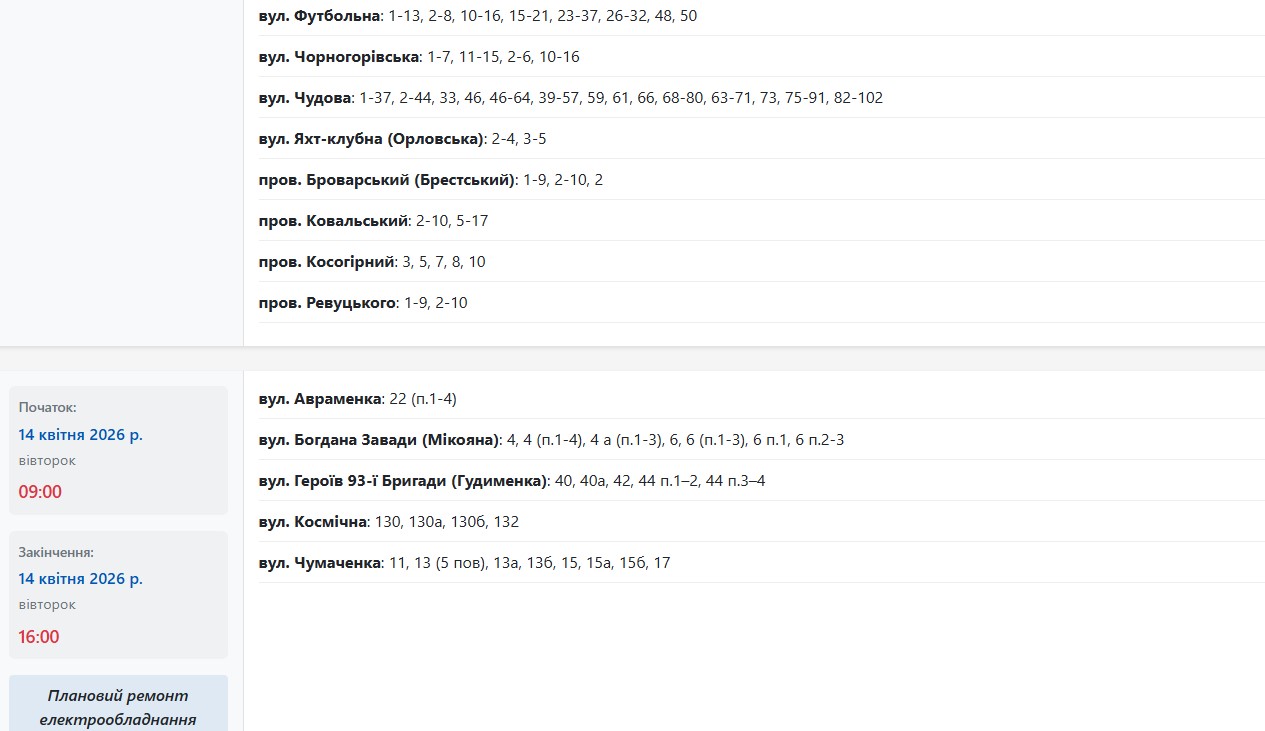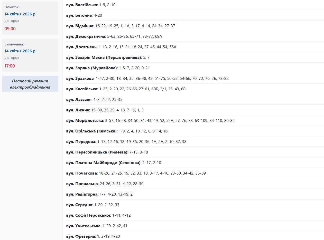 Во вторник, 14 апреля, в Запорожье обесточат более 45 улиц в разных районах города. Об этом сообщает Запорожьеоблэнерго, передает "Справжнє".