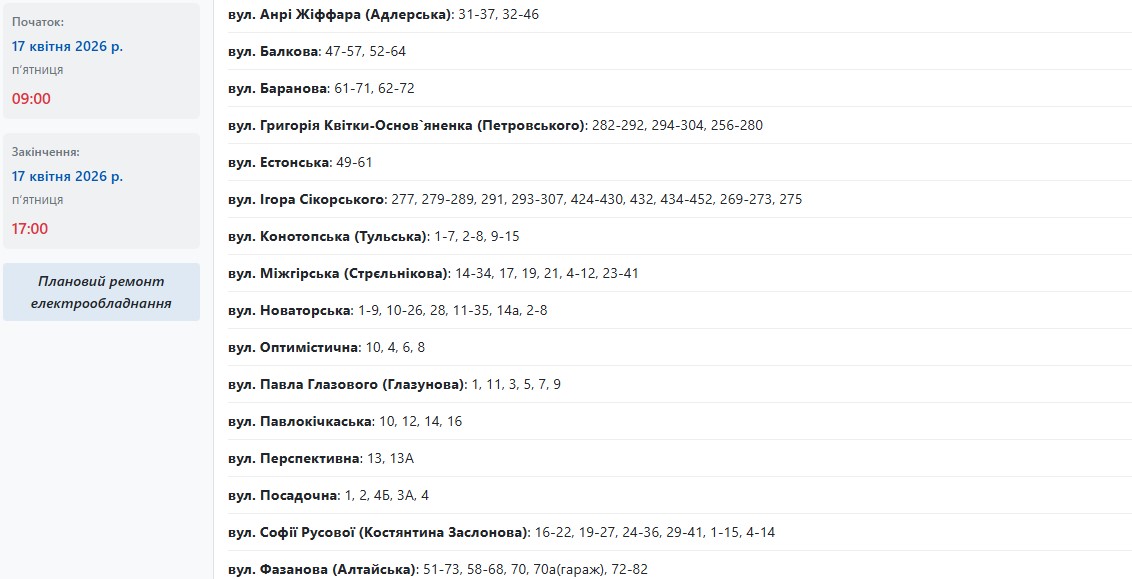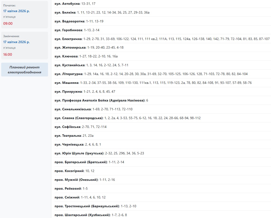 Дома на 45 улицах Запорожья останутся без электроснабжения в пятницу, 17 апреля, из-за планового и срочного ремонта электрооборудования. Об этом сообщает "Справжнє" со ссылкой на Запорожьеоблэнерго.