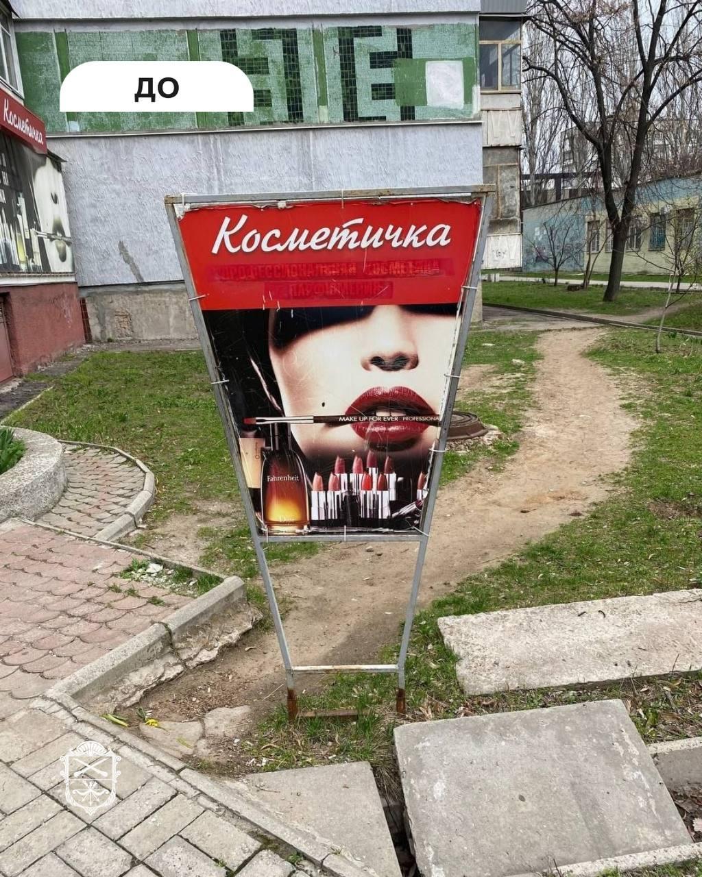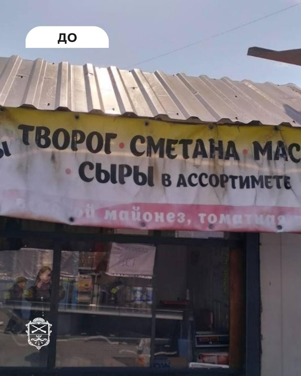В перечень, в частности, попали незаконные вывески торгового павильона на одном из городских рынков, магазинов косметики, сладостей, европейских товаров и т.д.