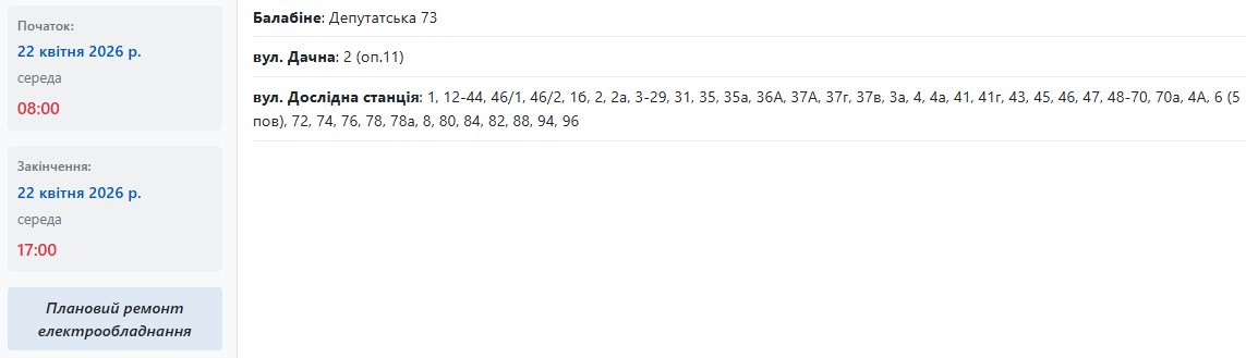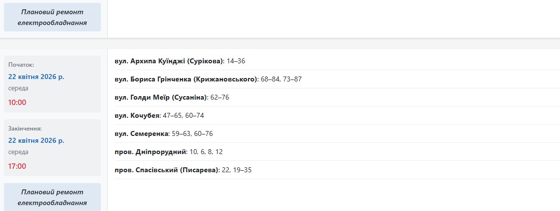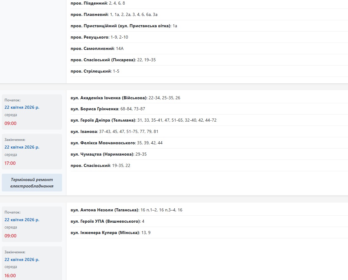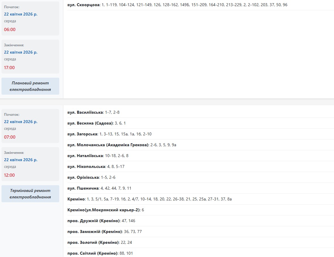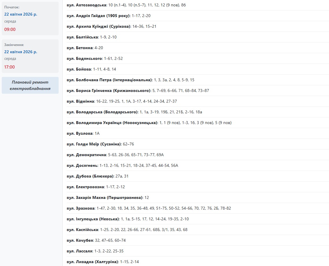 В среду, 22 апреля, в Запорожье временно обесточат более сотни улиц. Об этом информирует "Справжнє" со ссылкой на Запорожьеоблэнерго.