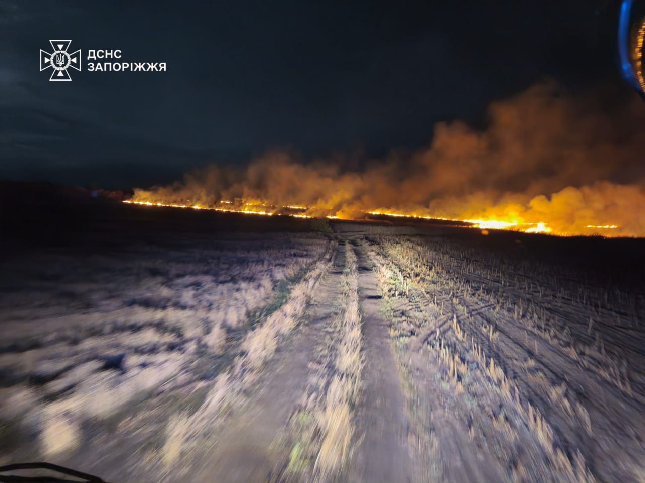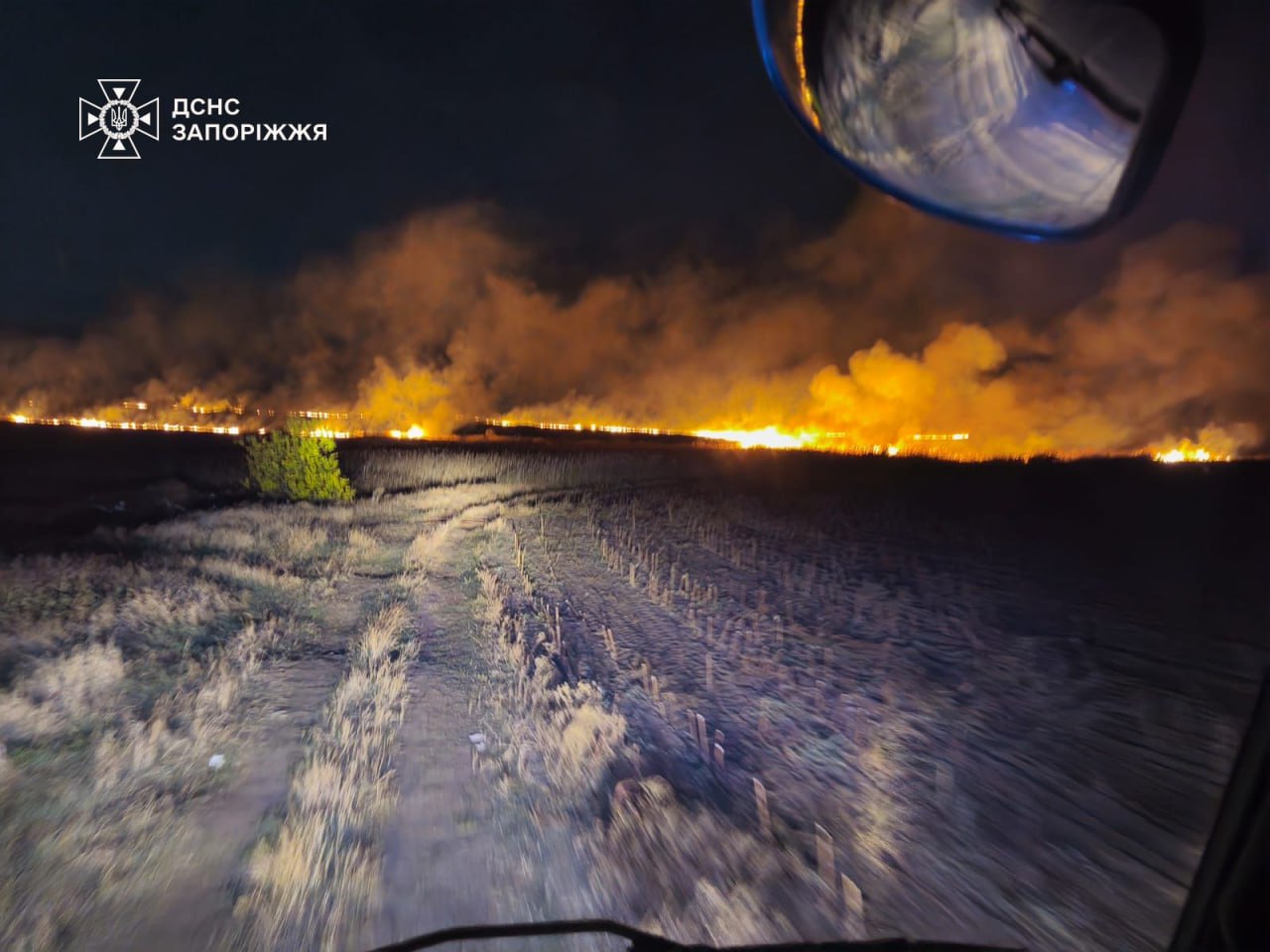 По информации ГСЧС, одно из возгораний произошло из-за обстрелов в Запорожском районе. Масштабный пожар возник вблизи населенного пункта Пологовского района, где горела сухая трава и камыши на площади 2 га.