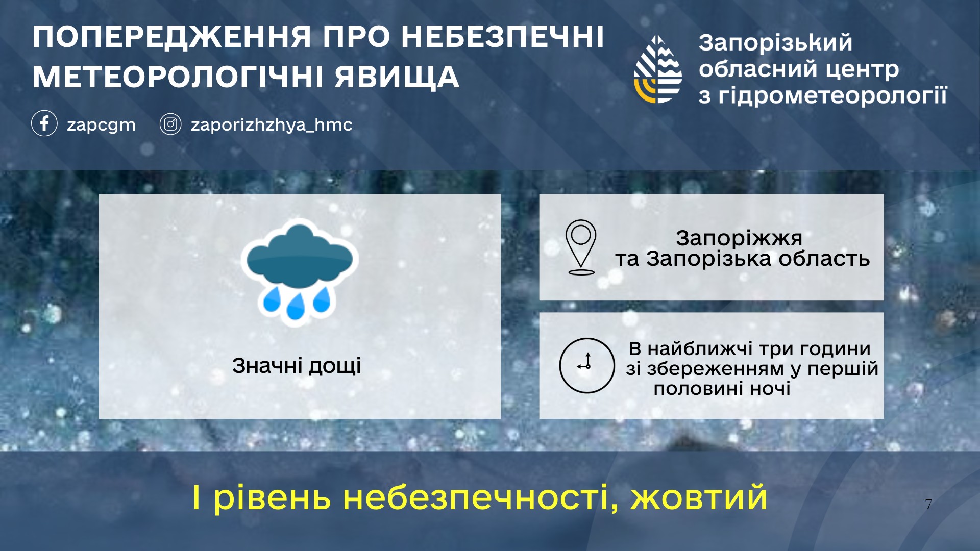 С вечера 8 января и до утра следующего дня на Запорожье надвигаются мощные ливни. Спасатели объявили желтый уровень опасности.
