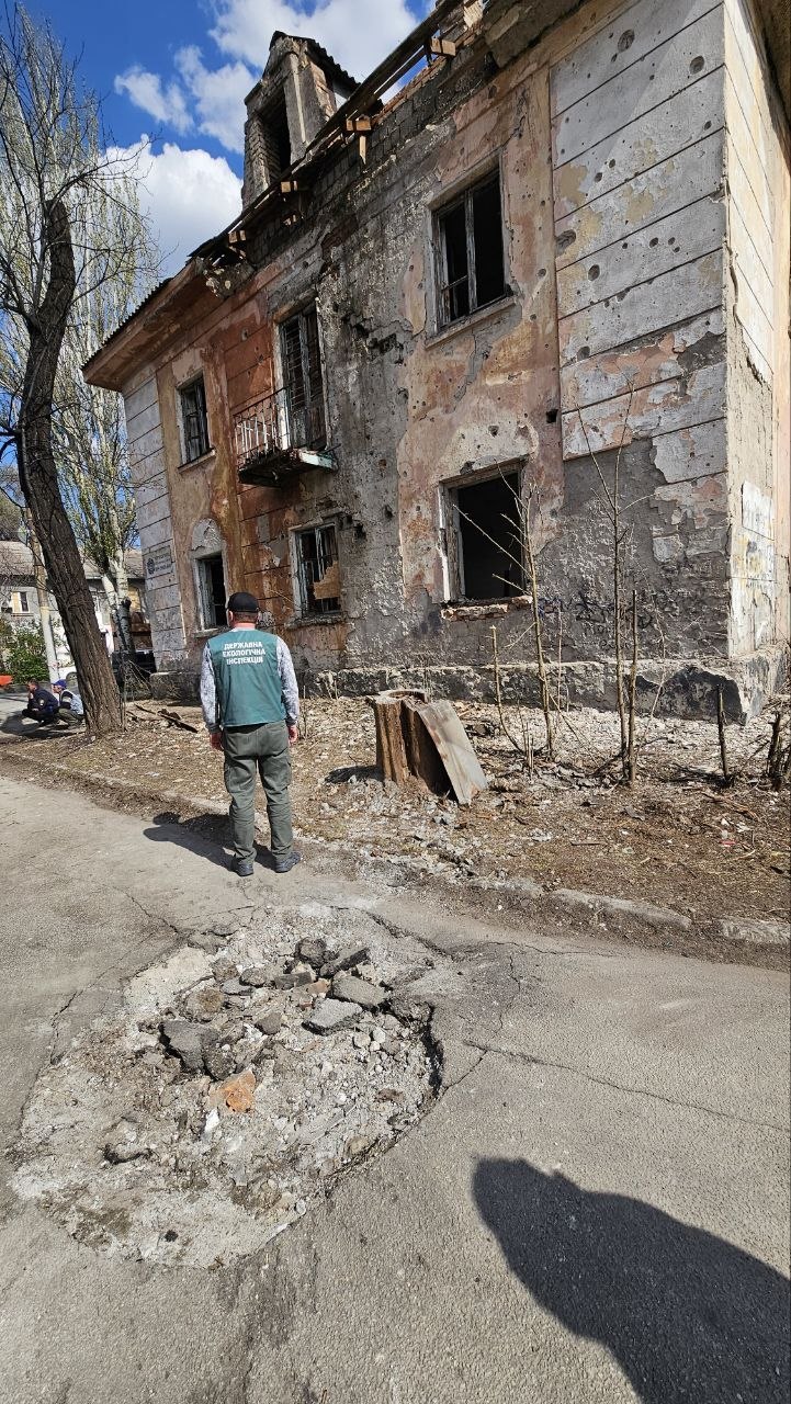 Вследствие вражеского обстрела место "прилета" засыпало отходами разрушений – общая площадь загрязнения составляет около 210 квадратных метров.