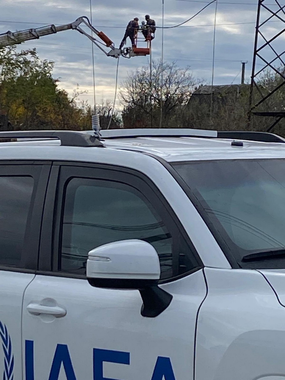 Ремонт поврежденных линий ЗАЭС. Фото: x.com/iaeaorg