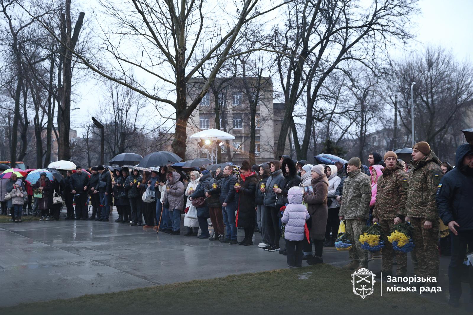 Погибших защитников почтили в Запорожье возле мемориального комплекса "Дерево памяти", передает "Справжнє" со ссылкой на Запорожский городской совет.
