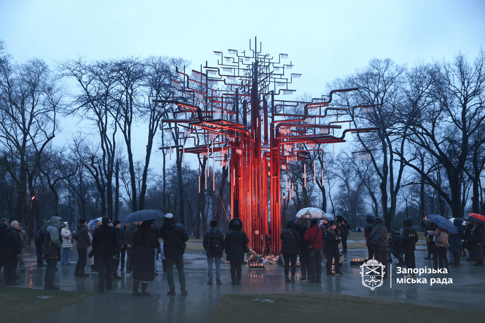 24 февраля, в день четвертой годовщины с начала полномасштабного вторжения РФ в Украину, запорожцы пришли к "Дереву памяти", чтобы вспомнить тех, кто погиб в борьбе с российским нашествием.