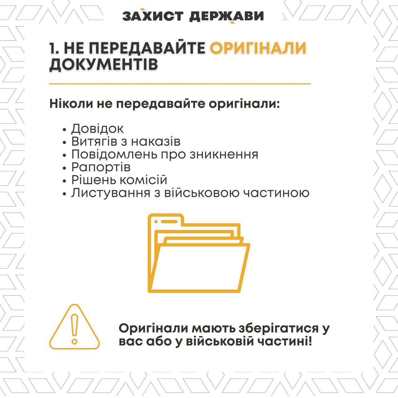 Не передавайте оригиналы документов