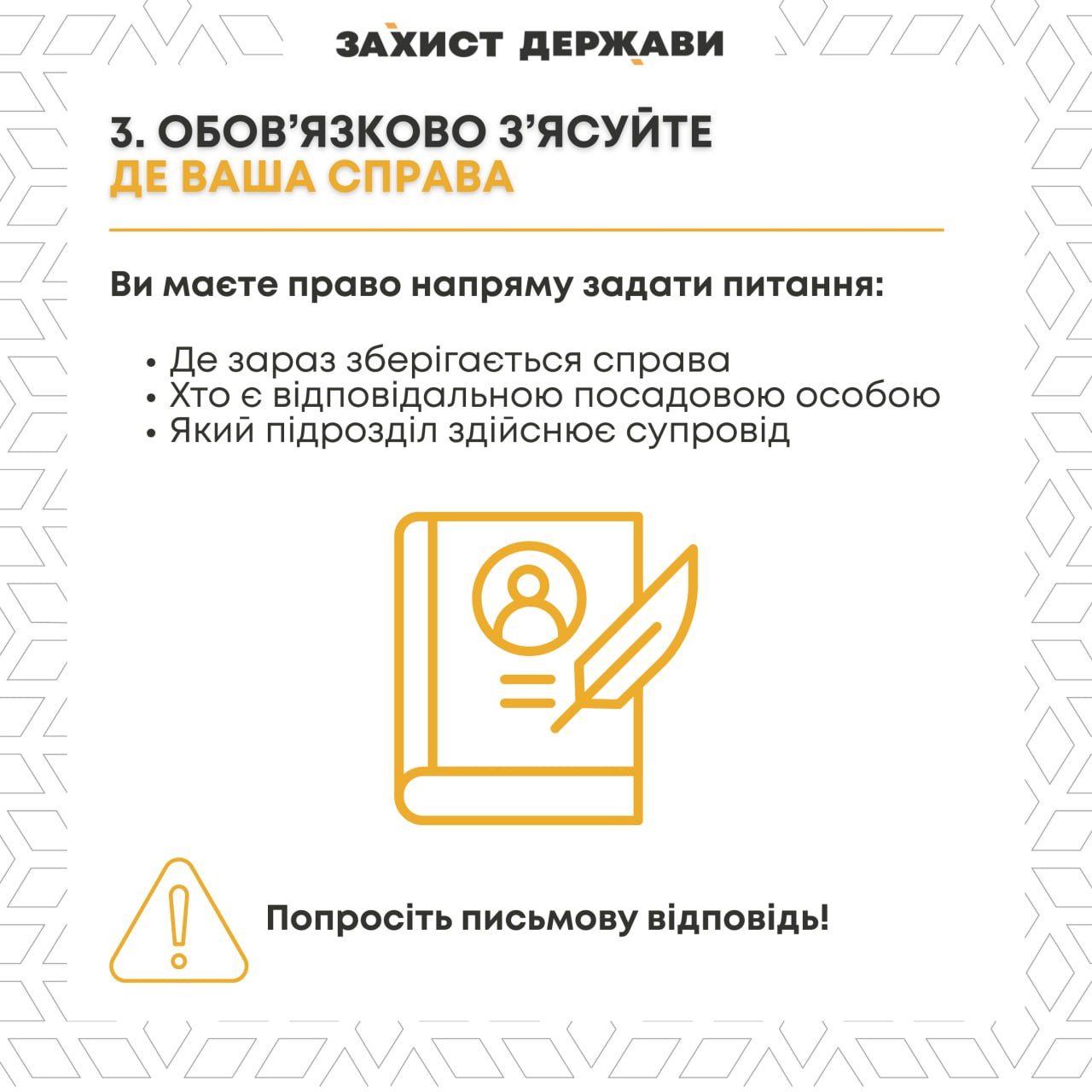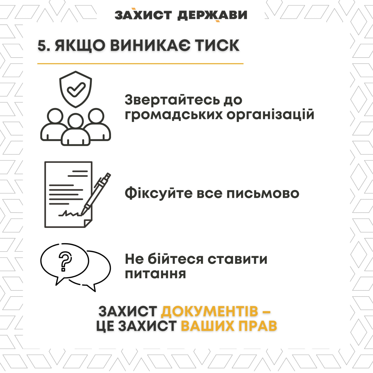 Если возникают давление или сомнения, обратитесь за бесплатной юридической помощью в общественные организации. Например, к ОО "Защита государства", которая работает по адресу: