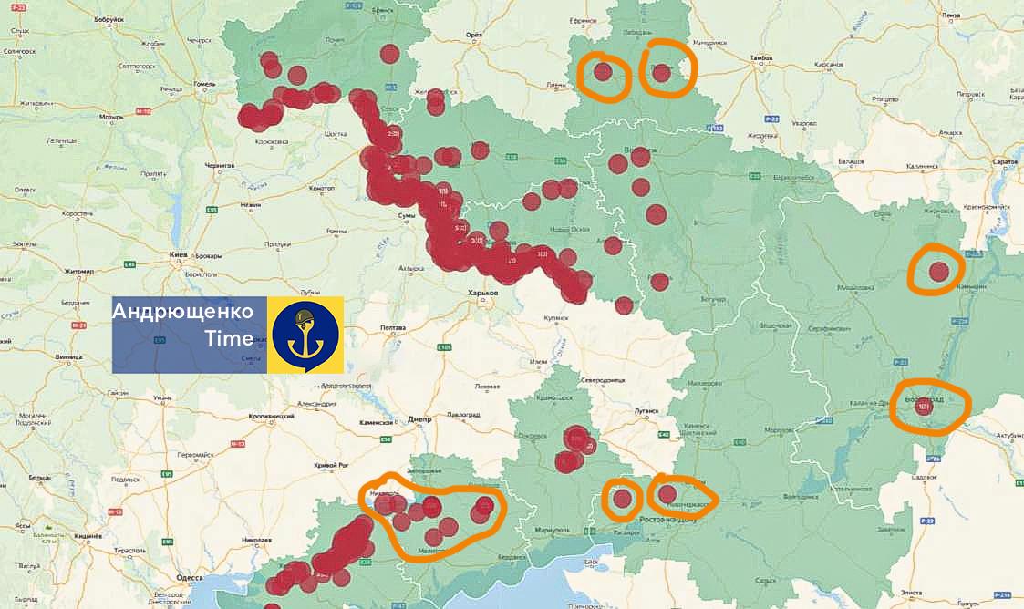 Также, по его словам, за прошедшую неделю российские источники опубликовали отчеты, фактически подтверждающие серию удачных украинских ударов по объектам на территории РФ – в Саратове, Воронеже, Волгограде, Борисоглебске и Ростовской области (Миллерово).