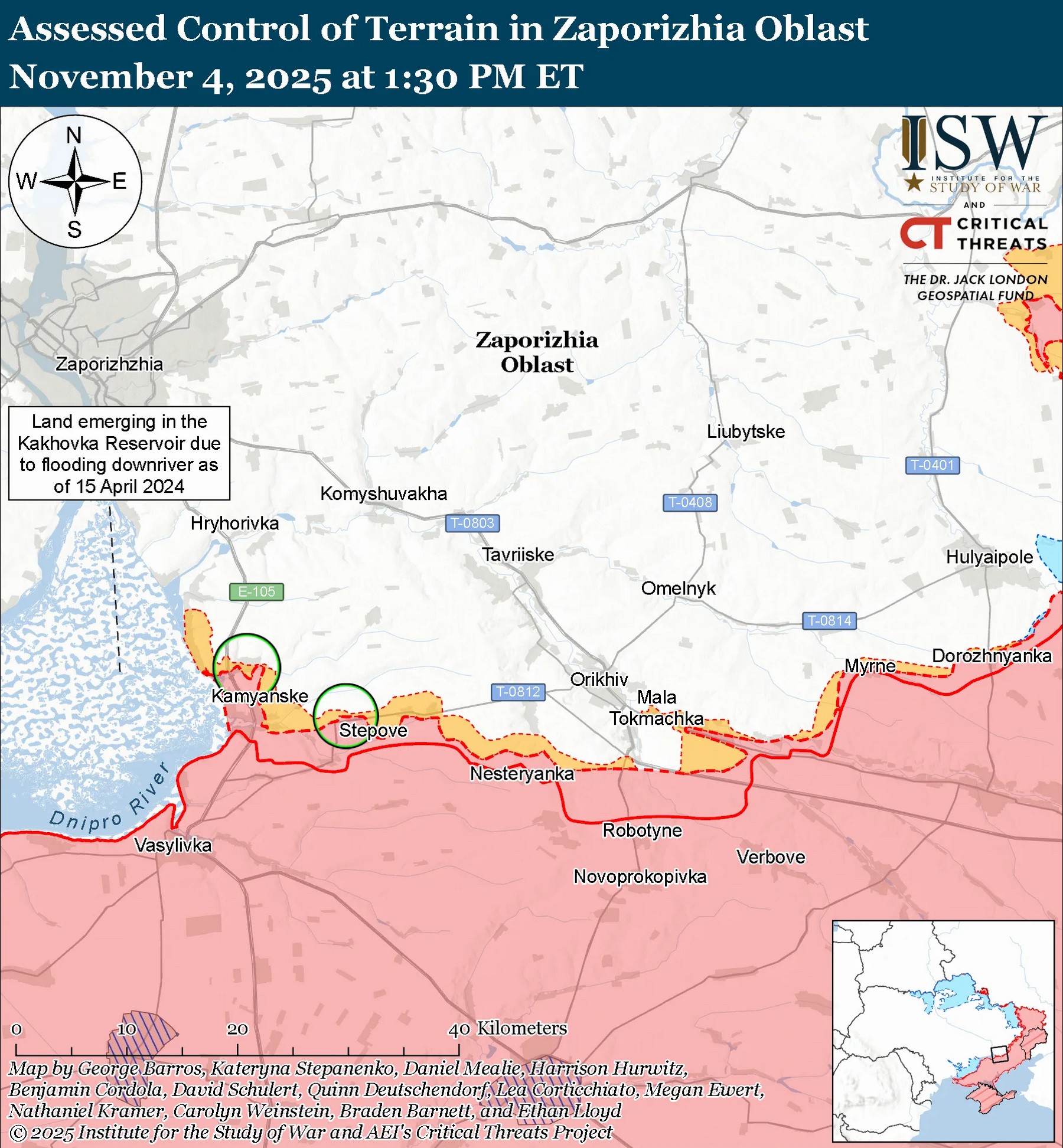 В течение вторника, 4 ноября, российским оккупационным войскам не удалось продвинуться ни на востоке, ни на западе Запорожской области. Об этом говорится в новом отчете американского Института изучения войны (ISW), сообщает "Справжнє".
