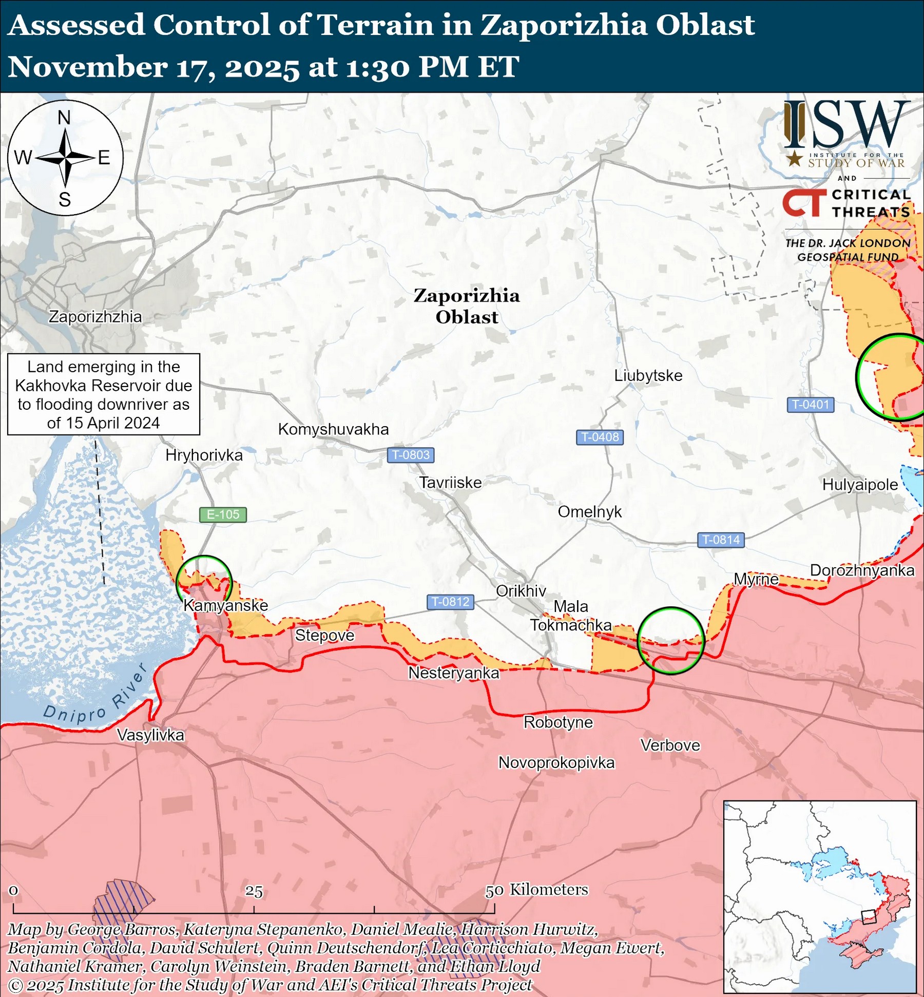 "Геолокационные кадры, опубликованные 17 ноября, показывают российские войска в центральной части Гая (к северо-востоку от Гуляйполя) во время, по оценкам ISW, миссии по проникновению, не изменившей переднего края зоны боевых действий", – утверждают западные эксперты.