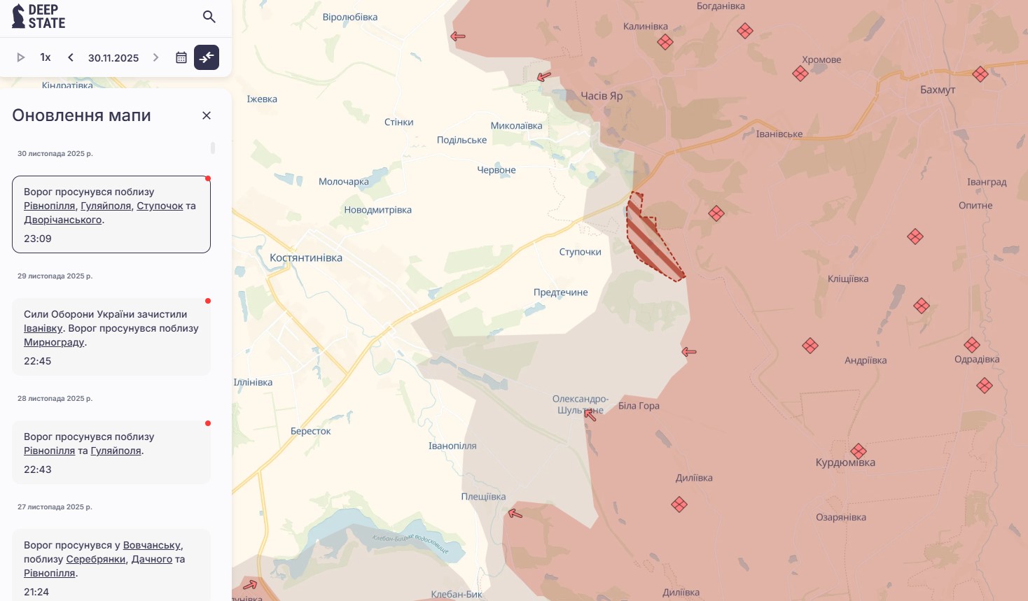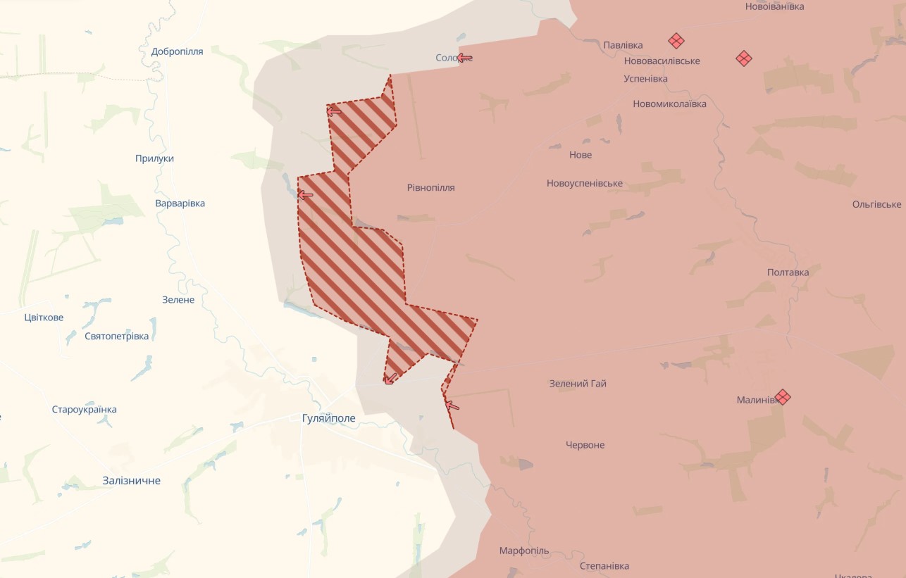 Российские оккупационные войска имеют успехи возле Гуляйполя и вблизи Ровнополья Запорожской области. Об этом сообщил украинский аналитический проект DeepState, передает "Справжнє".