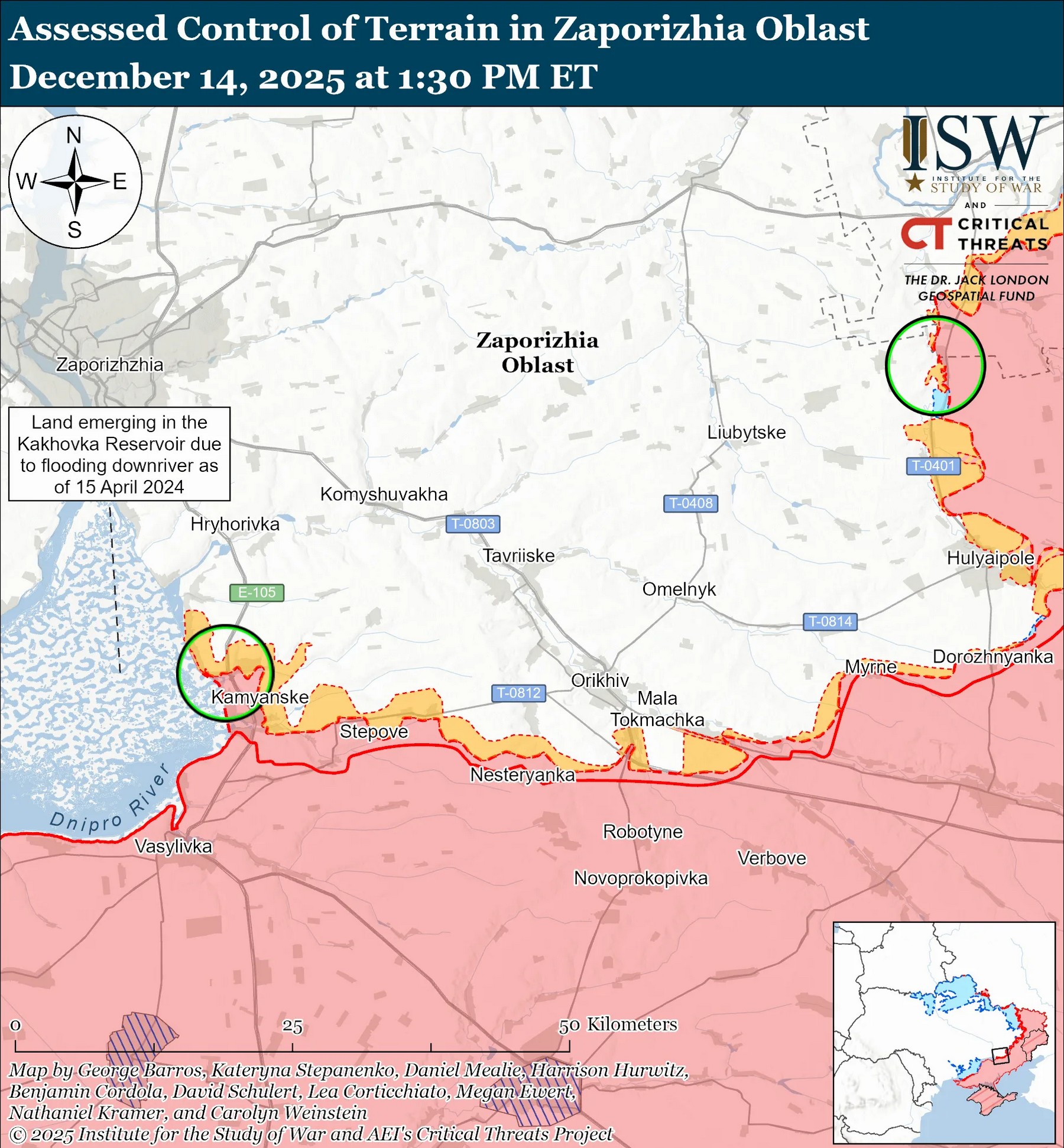 "Геолокационные видеозаписи, опубликованные 14 декабря, свидетельствуют о том, что российские войска продвинулись к автомагистрали Т0401 Днепр-Мелитополь в южной части Варваровки (к северо-западу от Гуляйполя и на восточном берегу реки Гайчур)", – заявили в ISW.